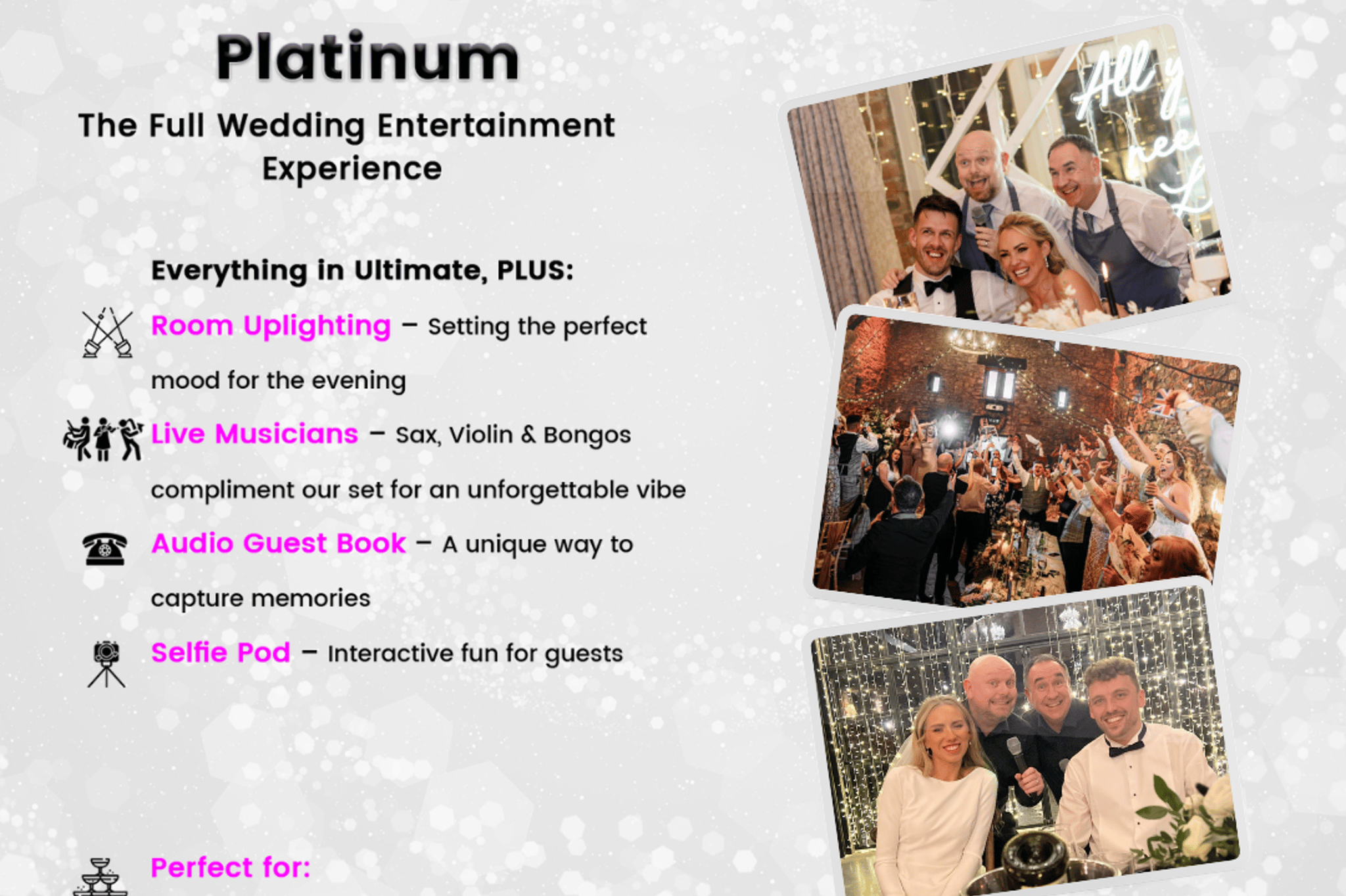 Expertise in celebration, coupled with an uncanny ability to read the audience, guarantees an impeccable, breath-taking performance that will leave your guests amazed.