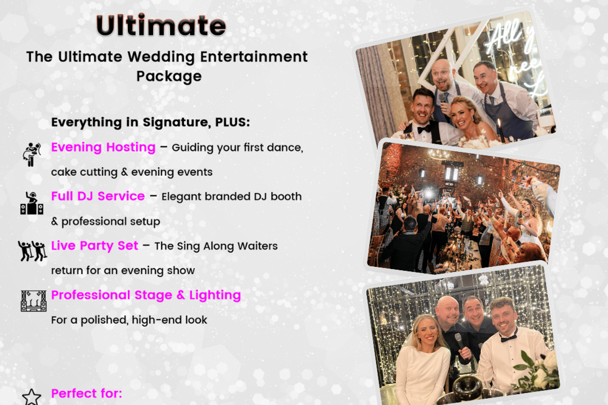 Get ready to laugh, sing and dance as they create memories that will last a lifetime. Don't settle for ordinary, elevate your event with The Sing Along Waiters® – the ultimate choice for any occasion.