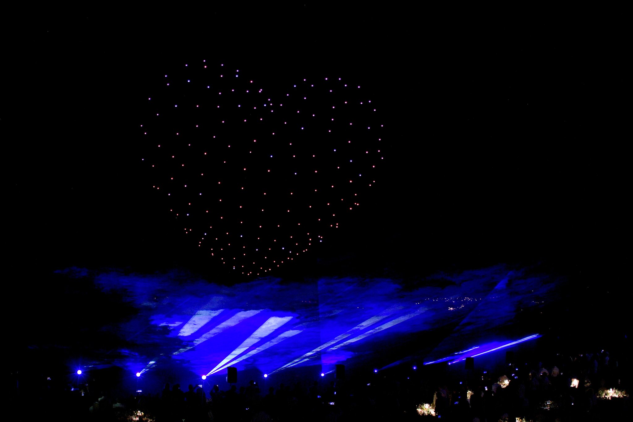 Bespoke wedding sky shows with drones, fireworks, lasers and sound. Fully managed from design to live delivery, creating a seamless finale tailored to your venue, soundtrack and story.