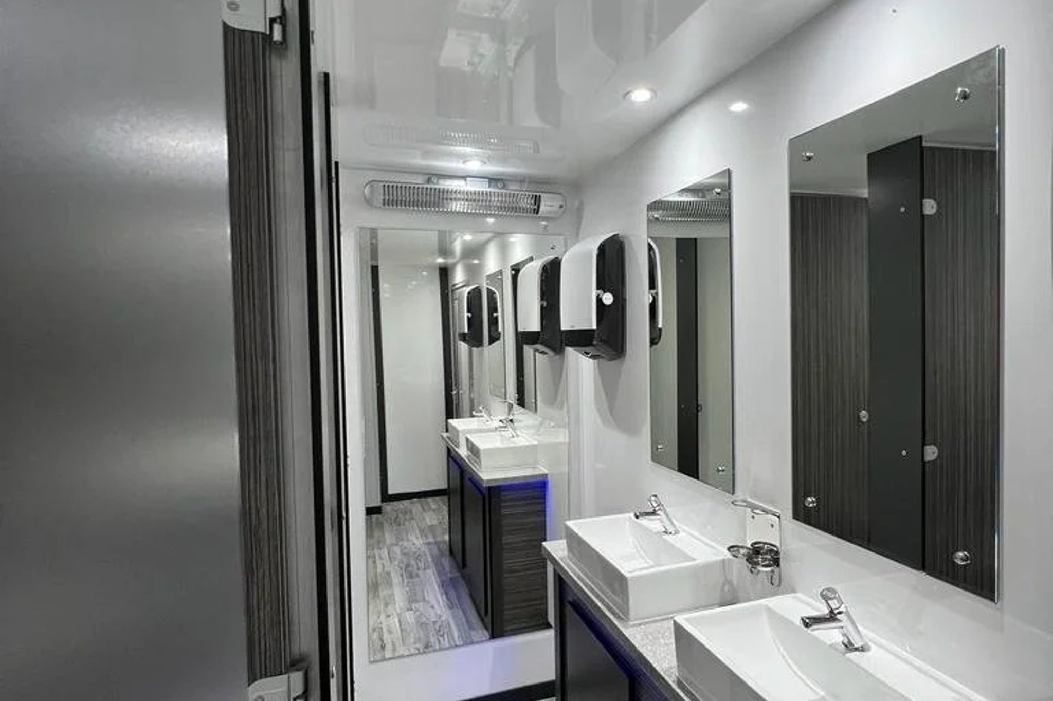 Our luxury toilet trailers are the perfect addition to your wedding day. Brand new, beautifully finished, and maintained to the highest standards. Each trailer features separate ladies' and gents' facilities with flushing porcelain toilets, running hot and cold water, vanity mirrors, interior lighting, and quality hand wash and hand towels. Your guests won't believe they're using a portable toilet.
