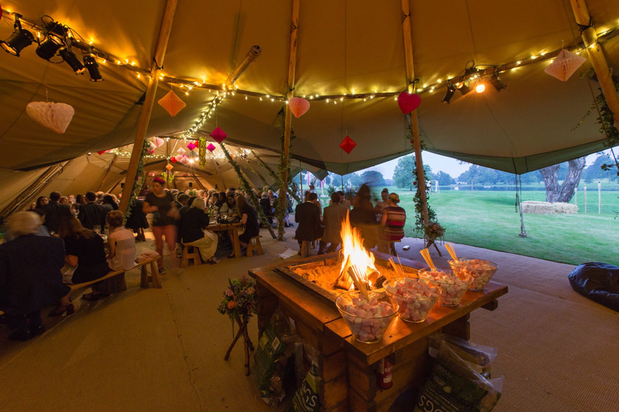 Other than the structures themselves (which are pretty special) our open fires probably draw the most attention. They add a huge amount of atmosphere and are booked for most weddings, even in the summer.