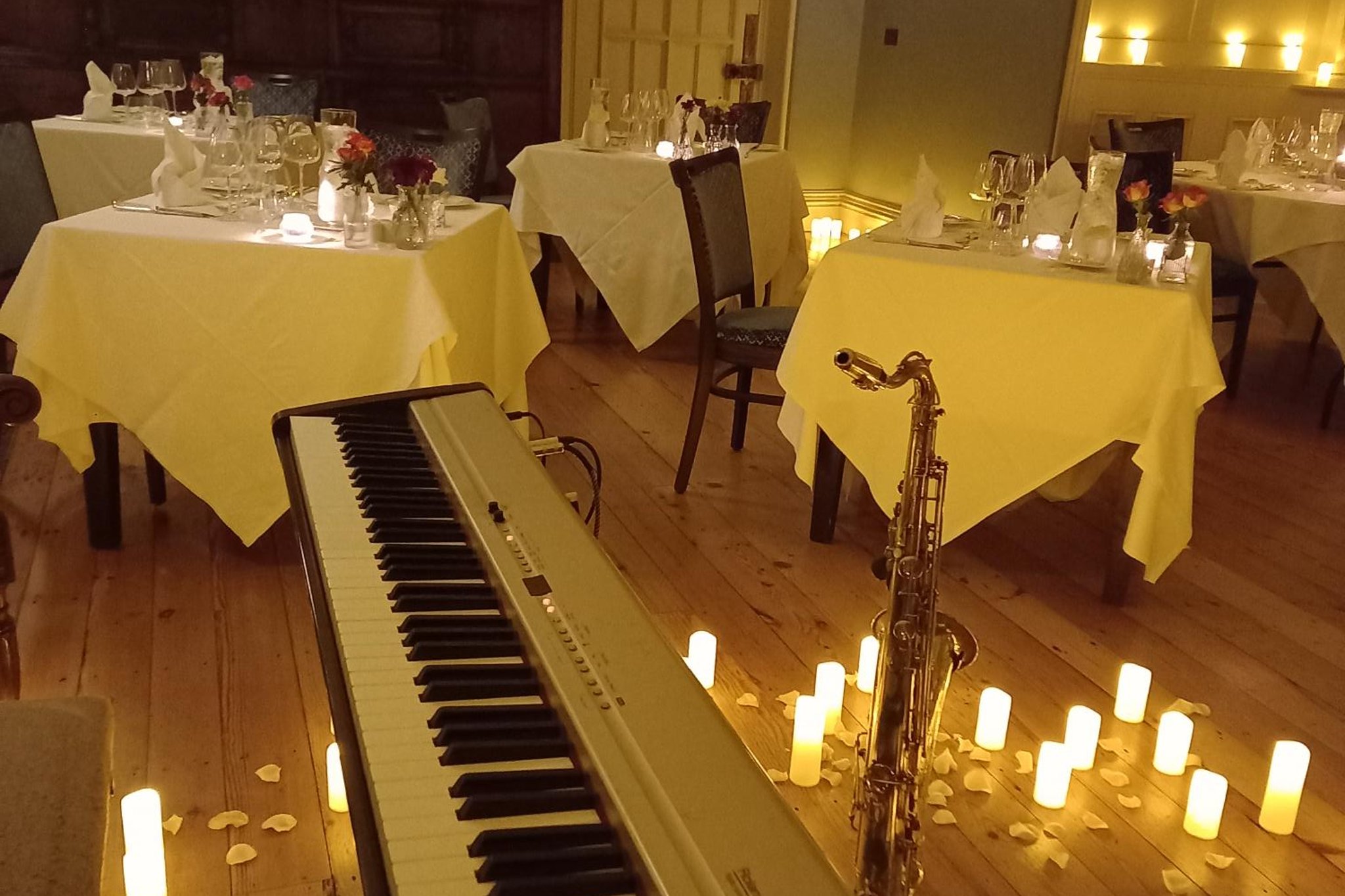 Dinner Jazz Duo is a superb group that create a wonderfully relaxed and charming atmosphere. Offering a sophisticated set of jazz classics, this duo is certain to leave you with your toes tappin' and fingers clickin’. Dinner Jazz Duo consists of two outstanding musicians, who cover a range of well-known artists such as Gershwin, Miles Davis and Cole Porter. This tasteful duo is a class act and the perfect accompaniment to your special day as they create the ideal atmosphere for mingling and socialising. They have a wealth of experience having performed at major venues such as the Royal Exchange, Canary Wharf, Manchester United and NEC Birmingham, and at many of the country’s top wedding venues. Dinner Jazz Duo also offers an extended line up to create a jazz trio with the addition of drums, sax, trumpet or vocals. Dinner Jazz Duo are more than happy to meet your requests ensuring your event runs smoothly and that everyone has a great time. For more information please get in touch.