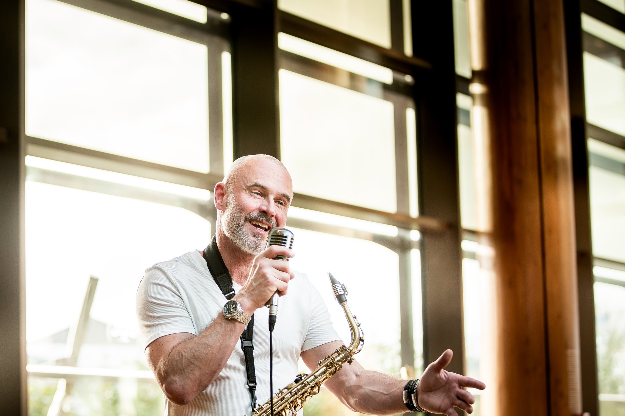 I offer a flexible range of live music and DJ performances that can be tailored to each part of your wedding day. This can include live background saxophone and vocals for your drinks reception and/or wedding breakfast, followed in the evening by my signature high-energy performance combining live saxophone, vocals, and DJing. My repertoire spans a wide variety of genres, from classic party favourites through to Ibiza-style dance music, ensuring there’s something for everyone on the dance floor.