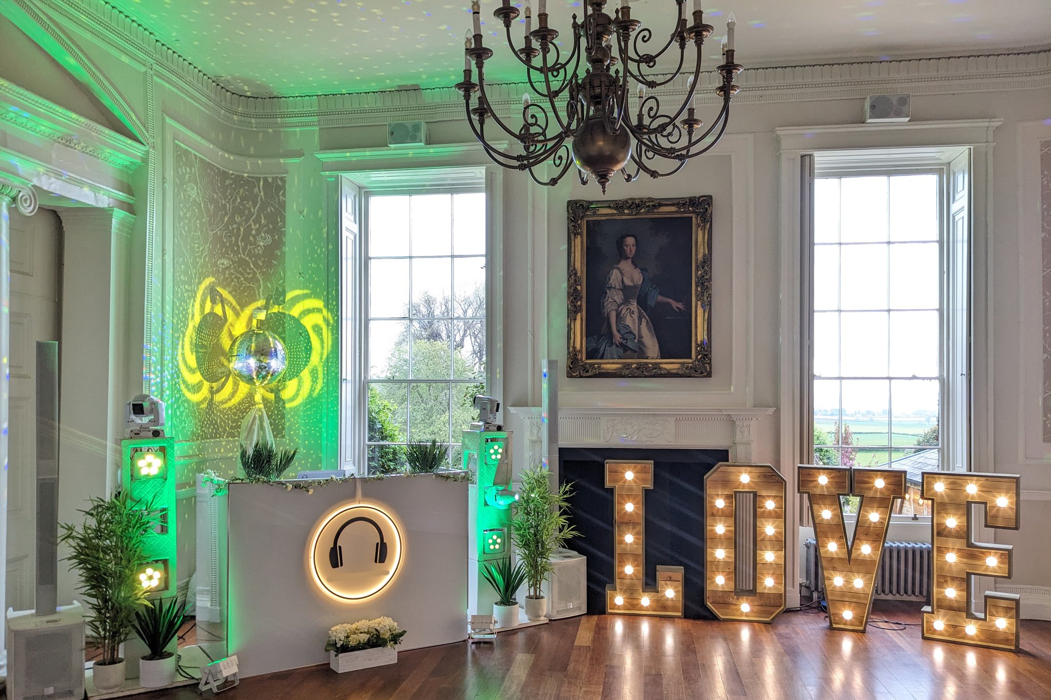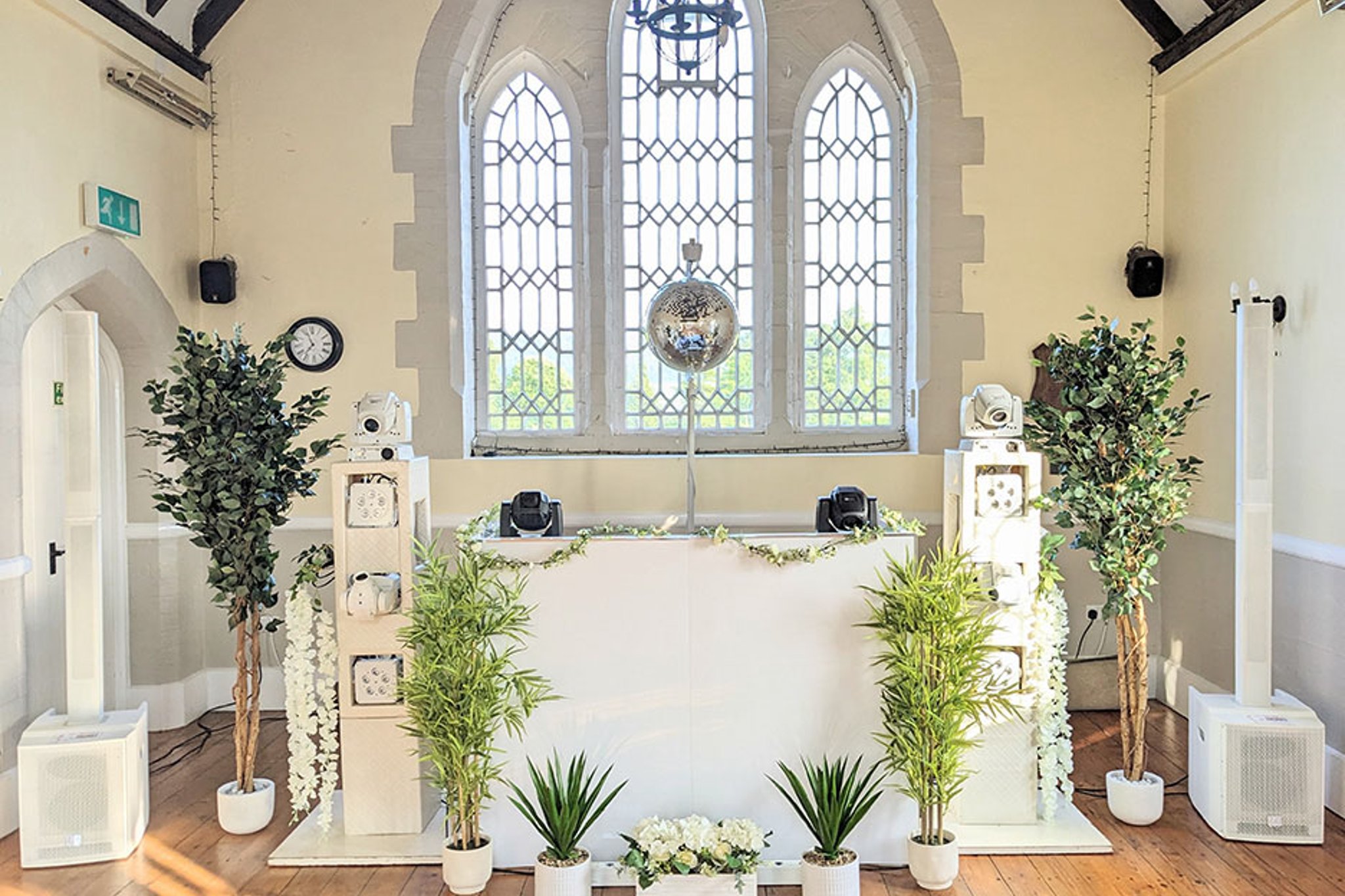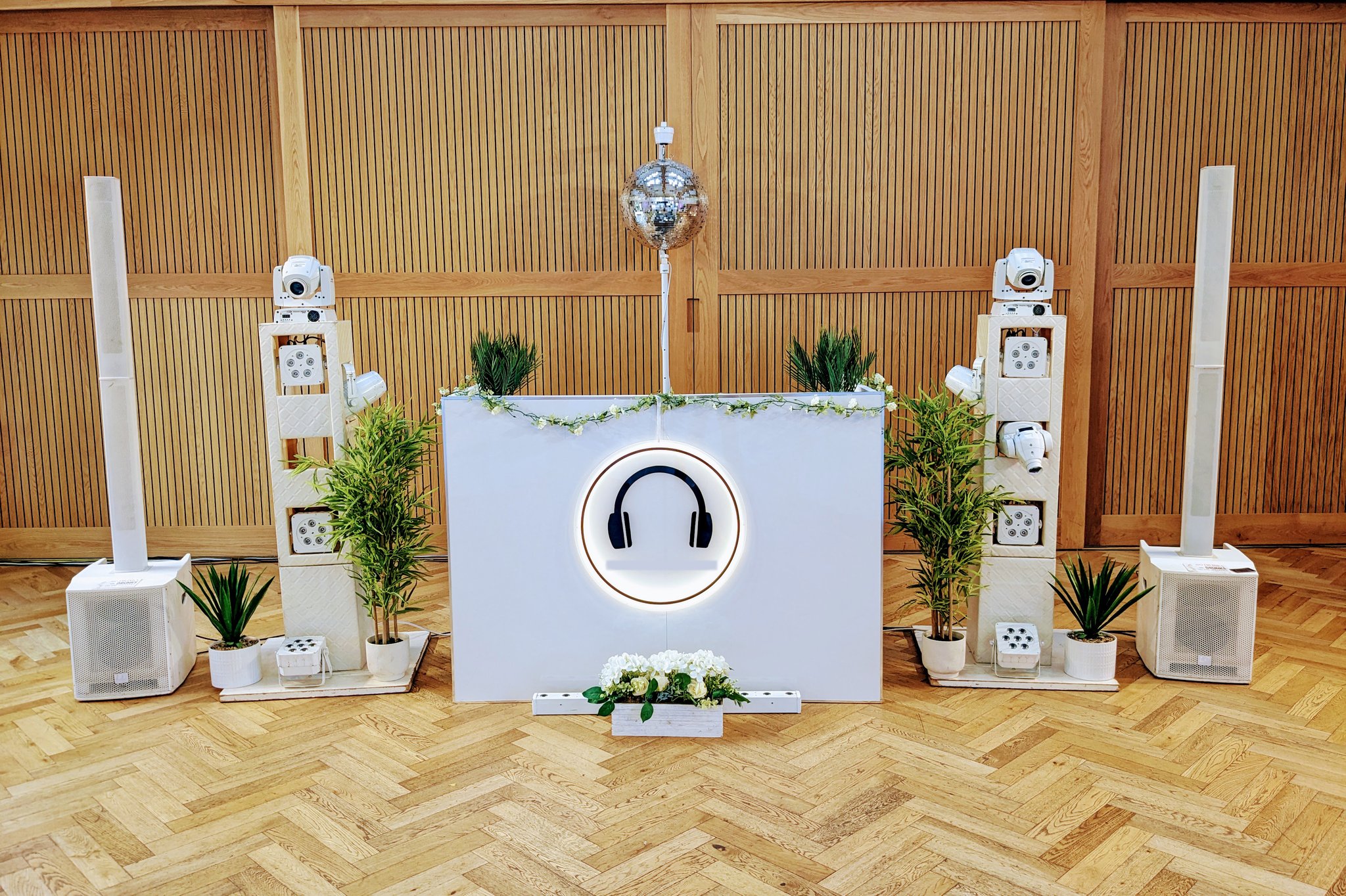 Visually, we make sure your setup looks just as incredible as it sounds. Whether you love the elegance of an all-white aesthetic, the romance of botanical styling, the charm of vintage, or the energy of a festival vibe, our beautifully designed DJ setups and custom lighting enhance your venue and elevate the entire experience.