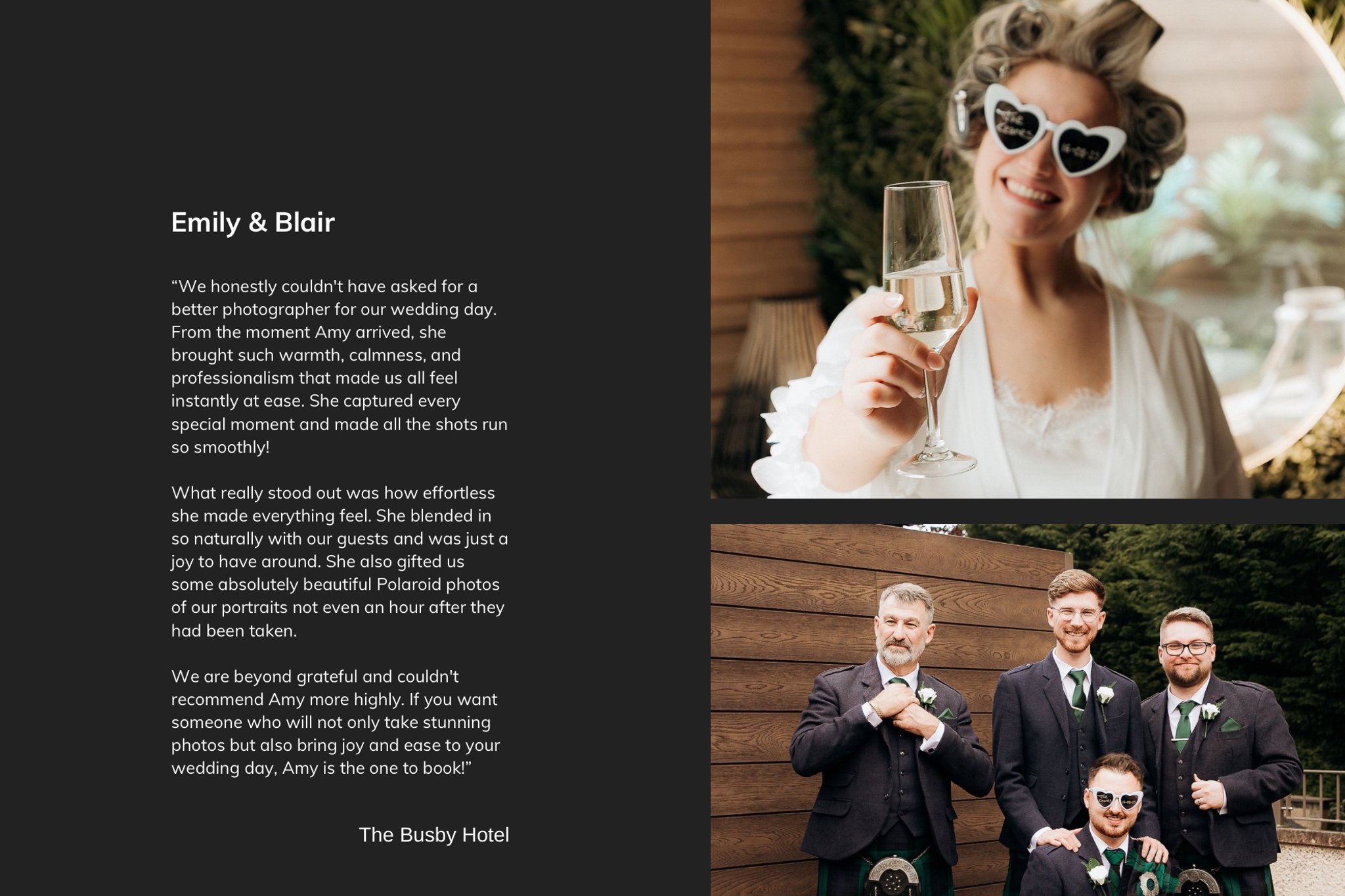 My style is relaxed, natural and story-led. I focus on real moments and genuine emotion rather than stiff posing, with a mix of candid coverage and gentle guidance where needed.