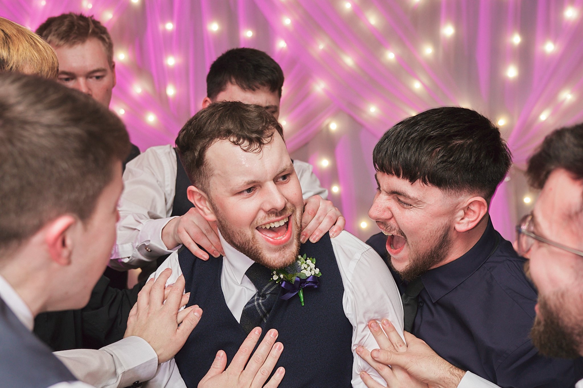 I like to get all the bridesmaids out of the room once they are ready, help the bride get her dress on and give her a few moments to herself, then get the friends and family in for first look photos. I always try not to join in with the emotions at this point!