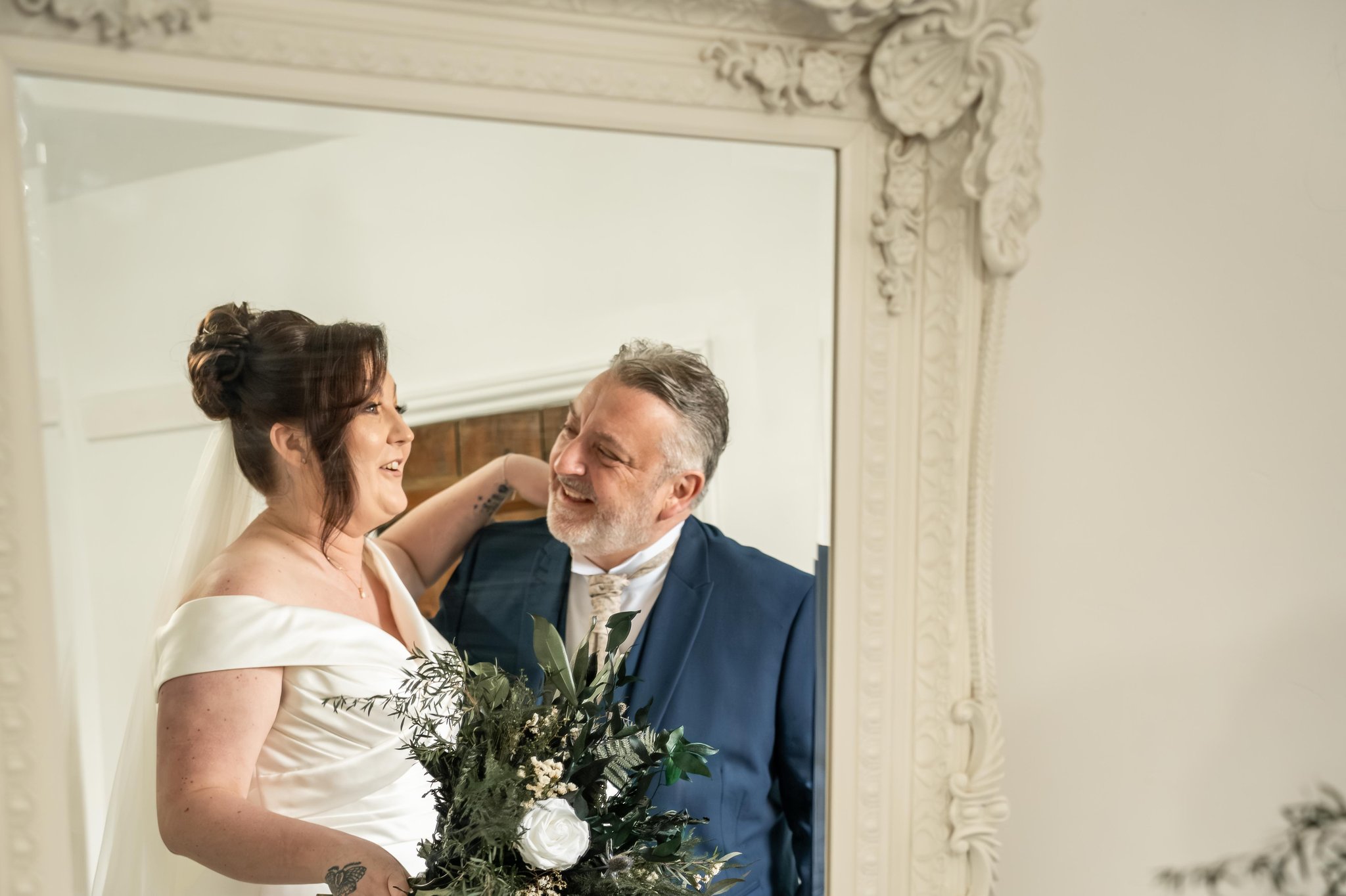 My first as a professional! It was at the beautiful venue of Whitley Hall in Sheffield. It was a very cold & drizzly February's morning ceremony, the couple were farmers who had to head back to their farm to milk the cows before returning! It made some stunning pictures and confirmed that my decision to go full time into wedding photography was the right one! The bride's sister then booked me later that day to cover their wedding later that year, who also then had to head off for milking post ceremony!
