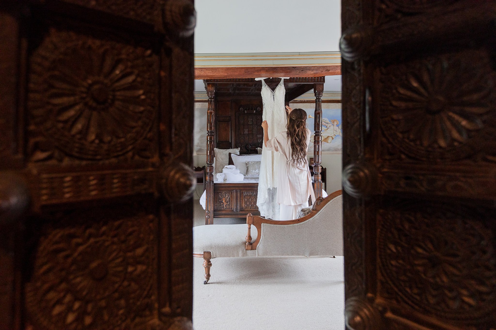 We usually arrive one and a half hours before the bride leaves for the ceremony, capturing the anticipation, laughter, and quiet beauty of getting-ready moments. Each location is prepared so we can work seamlessly and unobtrusively.