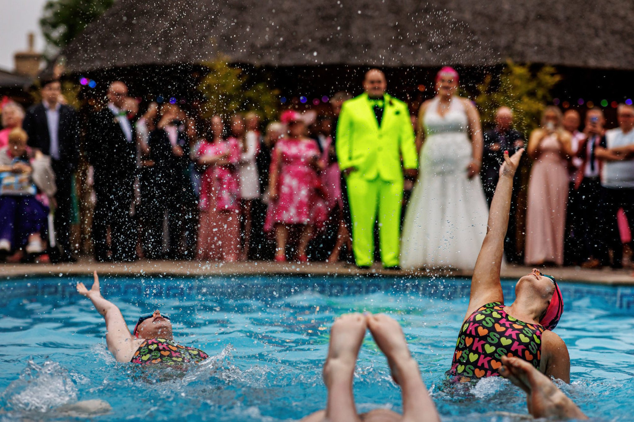 A positive attitude, and a willingness for my couple to get slightly wet to get a backlit shot in the rain (with brollies!)