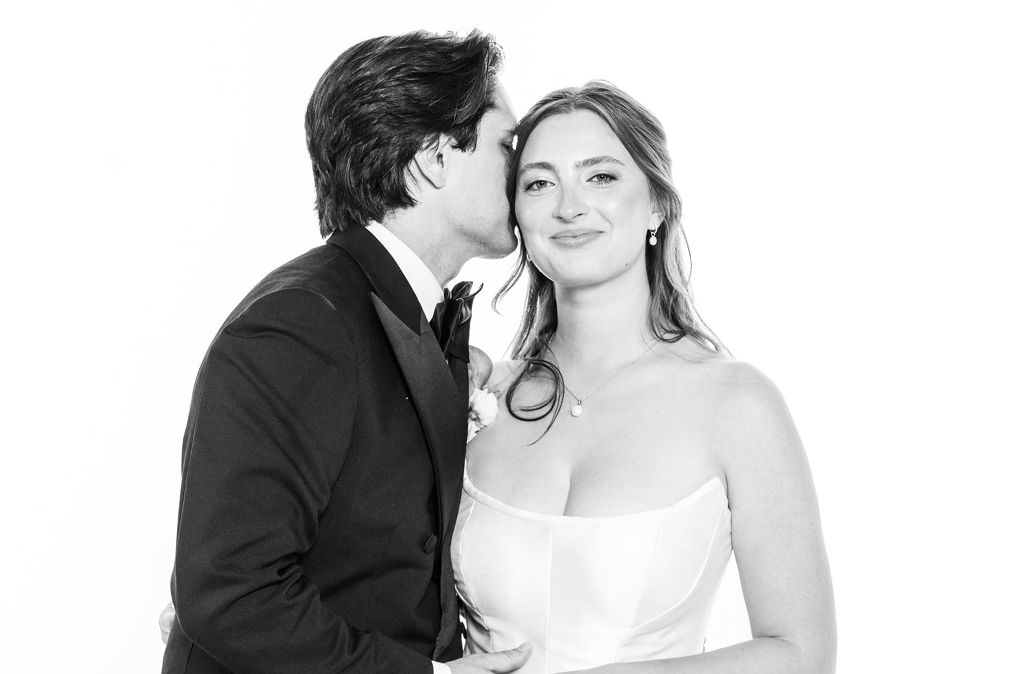 We transform a space within your venue into a refined, editorial-style portrait studio, complete with our signature white backdrop, professional studio lighting, and live direction from an experienced photographer. The result is a beautifully curated black and white portrait experience that feels closer to a magazine shoot than a party add-on.
