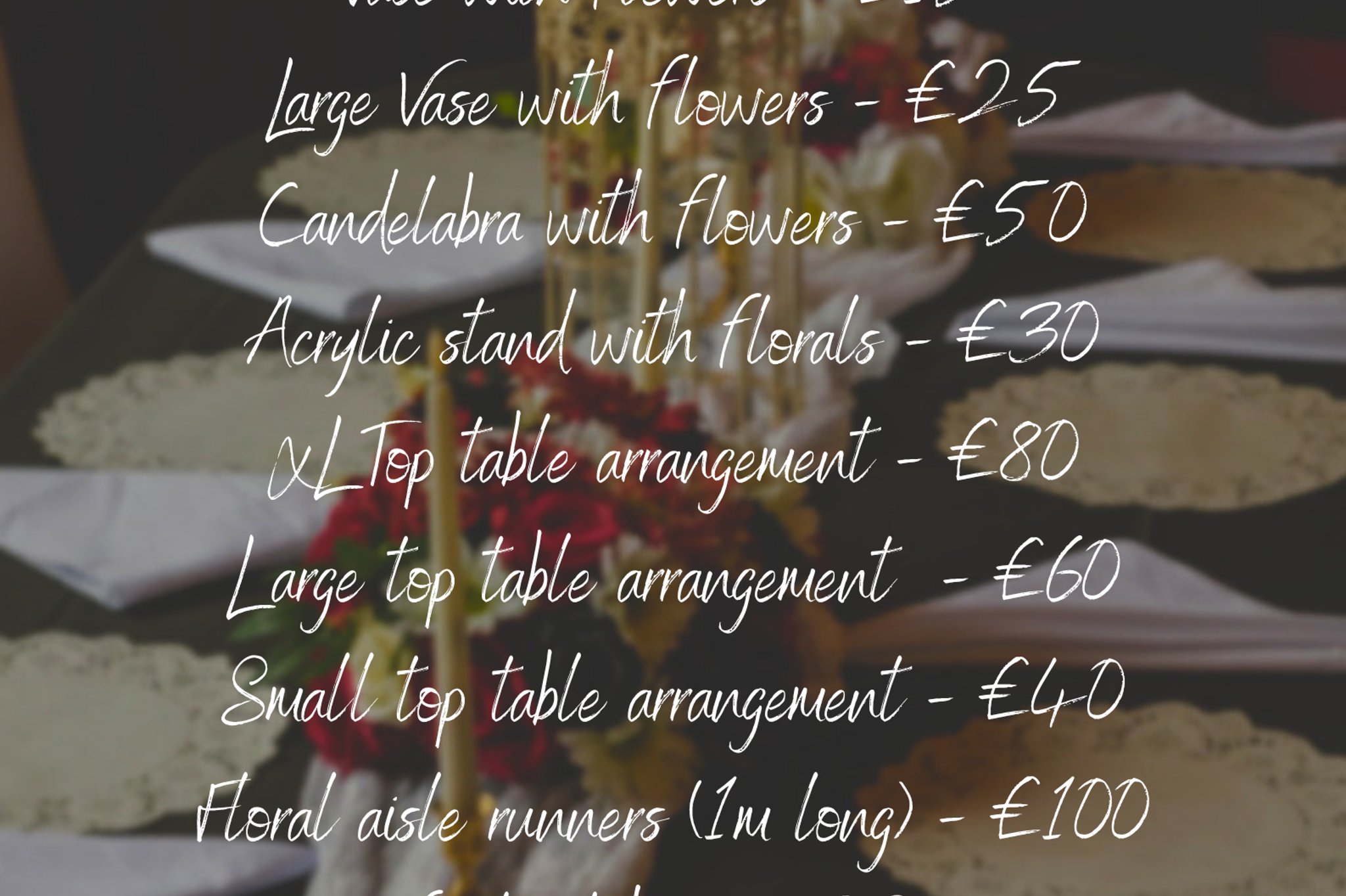 we offer faux floral decor at a discounted price alongside our planner packages.