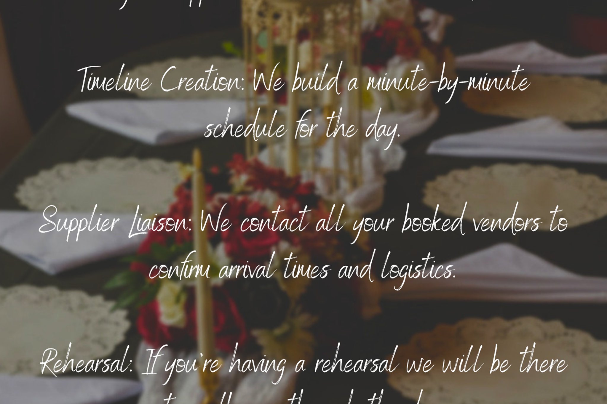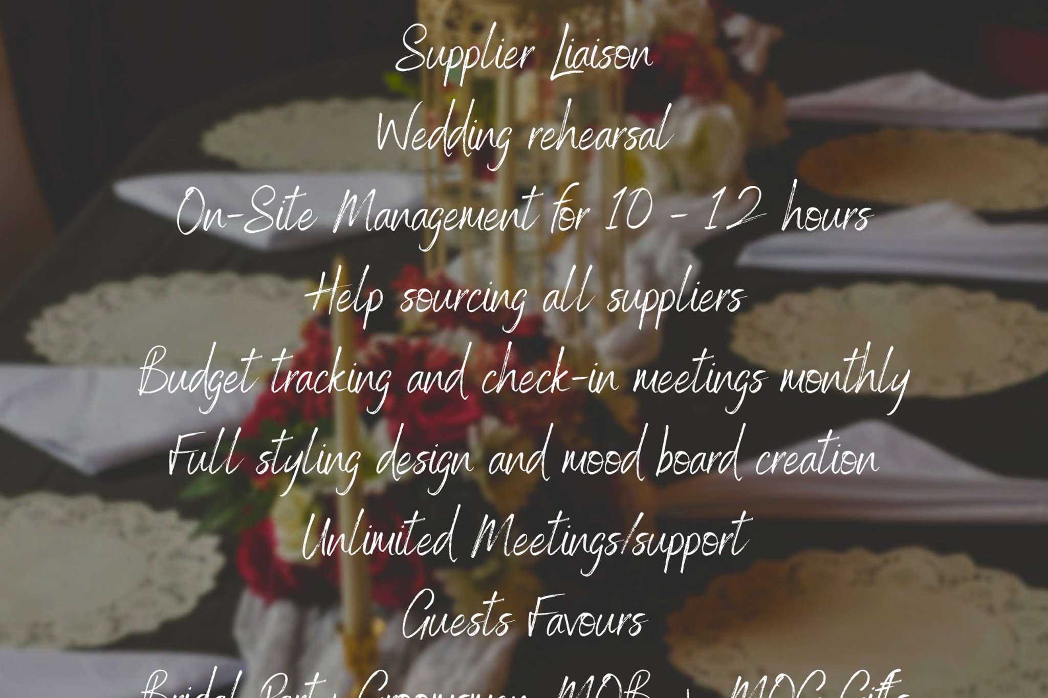 From staying within a budget or even saving money, to running your day and ensuring every detail is perfect, We are here to help.