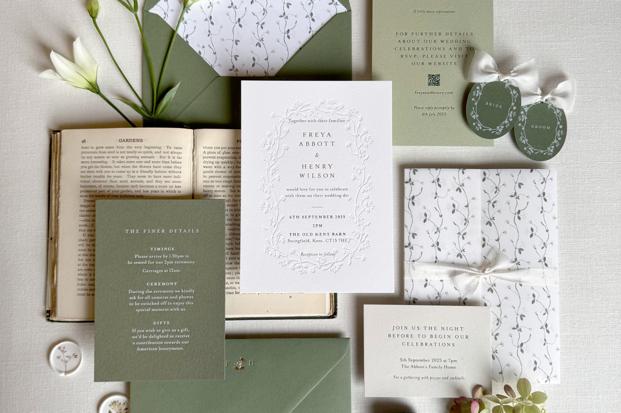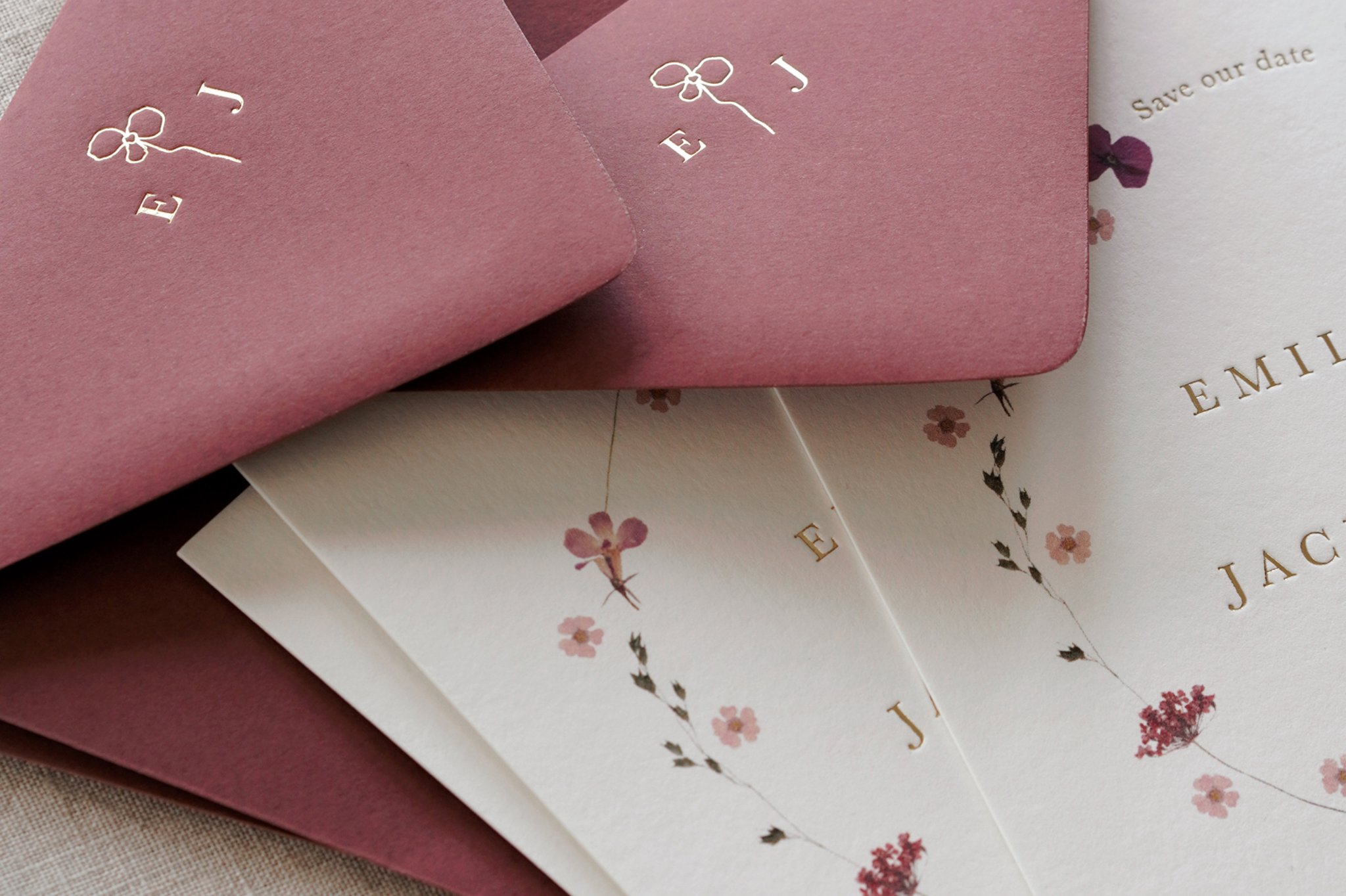 I specialise in a gentle form of luxury, taking time to perfect each individual save the date, invitation or piece of wedding day stationery that I work on. The foil is hand pressed onto each card individually, the flowers are grown and pressed by me from my very own garden. The aim is to set the tone of your wedding day beautifully, with thoughtfulness, and at a level of detail that will really wow your guests.