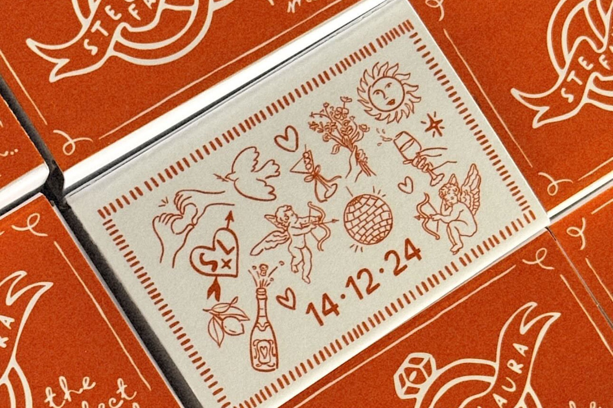Yes. Every piece we create is entirely bespoke. From our signature wedding matchboxes to invitations, menus, and table details, all designs are developed specifically for each celebration. We offer unlimited revisions and take the time to refine every detail, ensuring the final result feels personal, cohesive, and elevated.