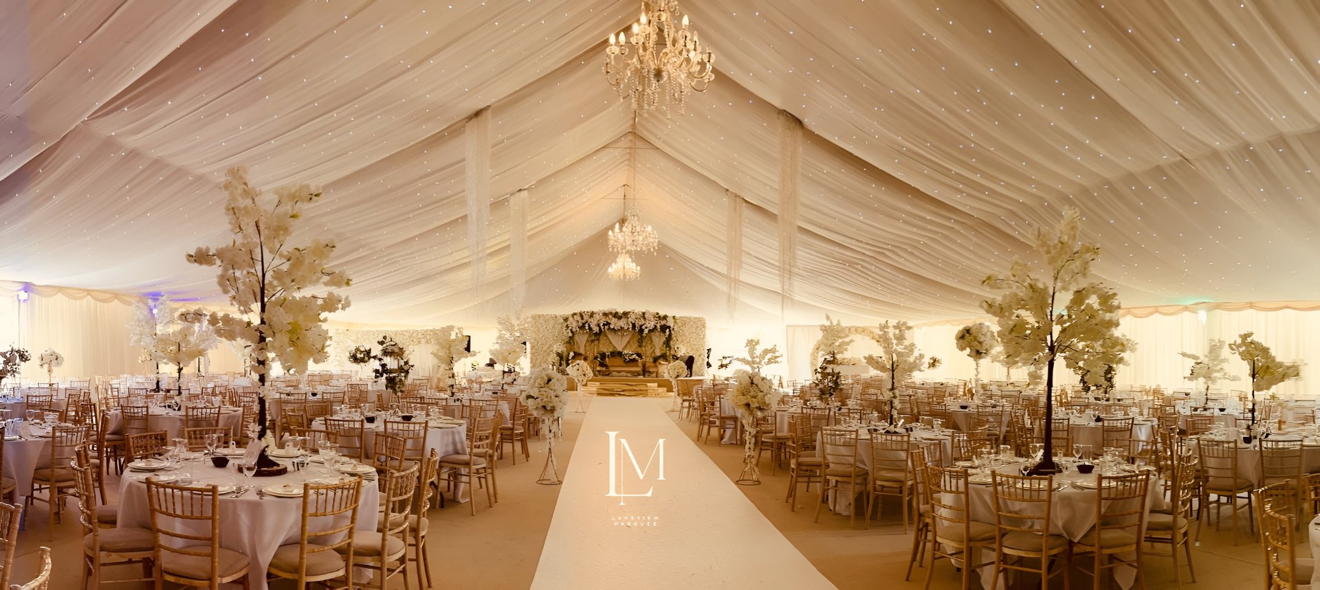The venue can comfortably accommodate approximately 50 guests on the main floor, with an additional 20 guests on the mezzanine level, making it ideal for intimate weddings and receptions.