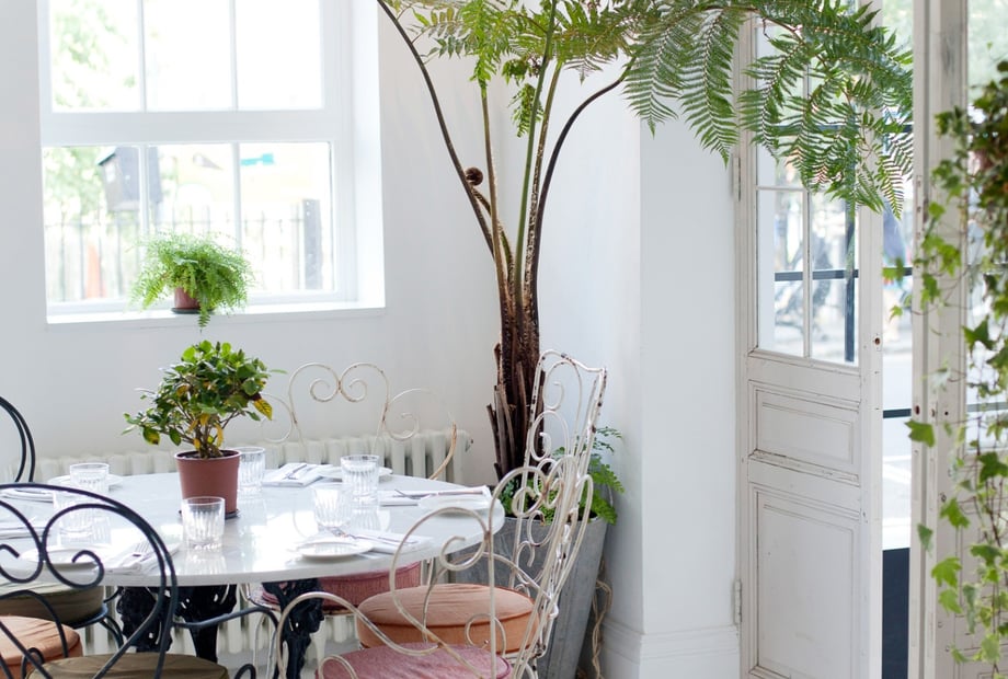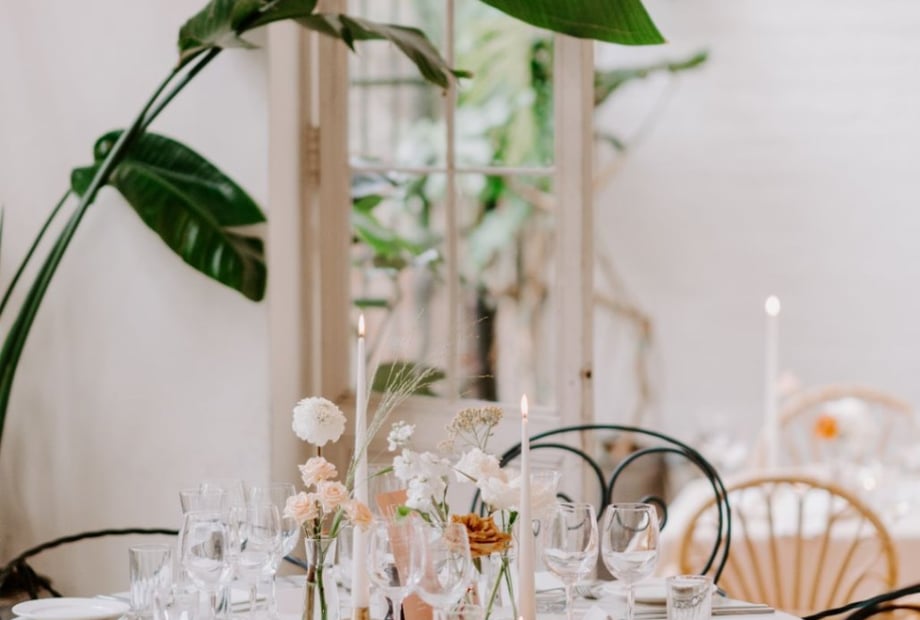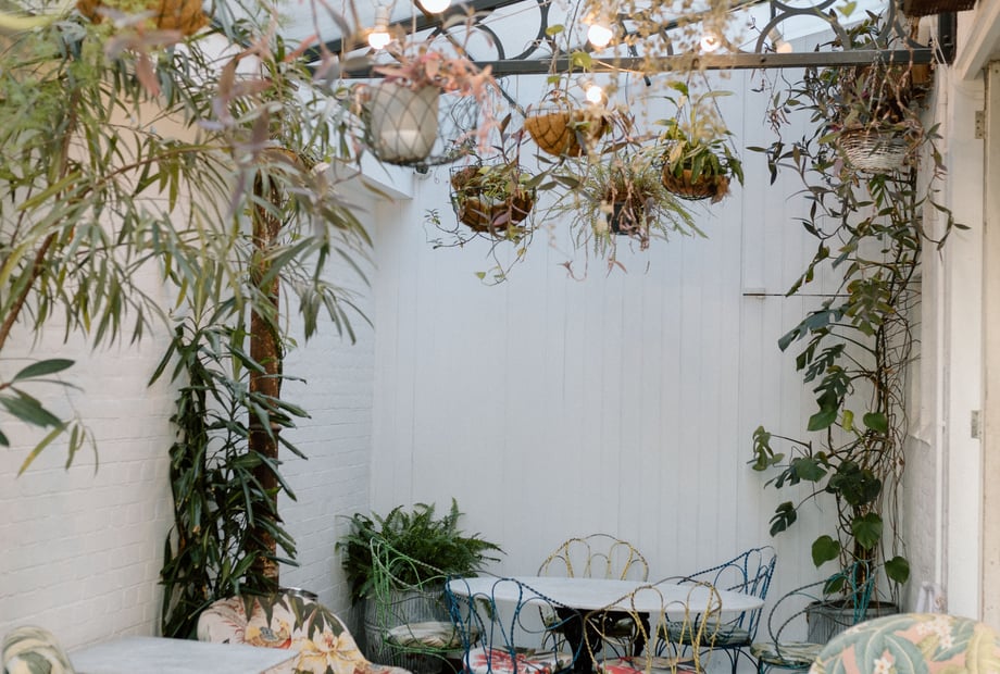 THE SPACESThe entire building can be yours for the day, which includes six distinct areas. We can host up to 110 guests for dinner or 180 guests for a reception, with all spaces boasting carefully curated interiors, lush hanging baskets and numerous windows to allow for an abundance of natural light. Each space is already romantically decorated for the occasion.