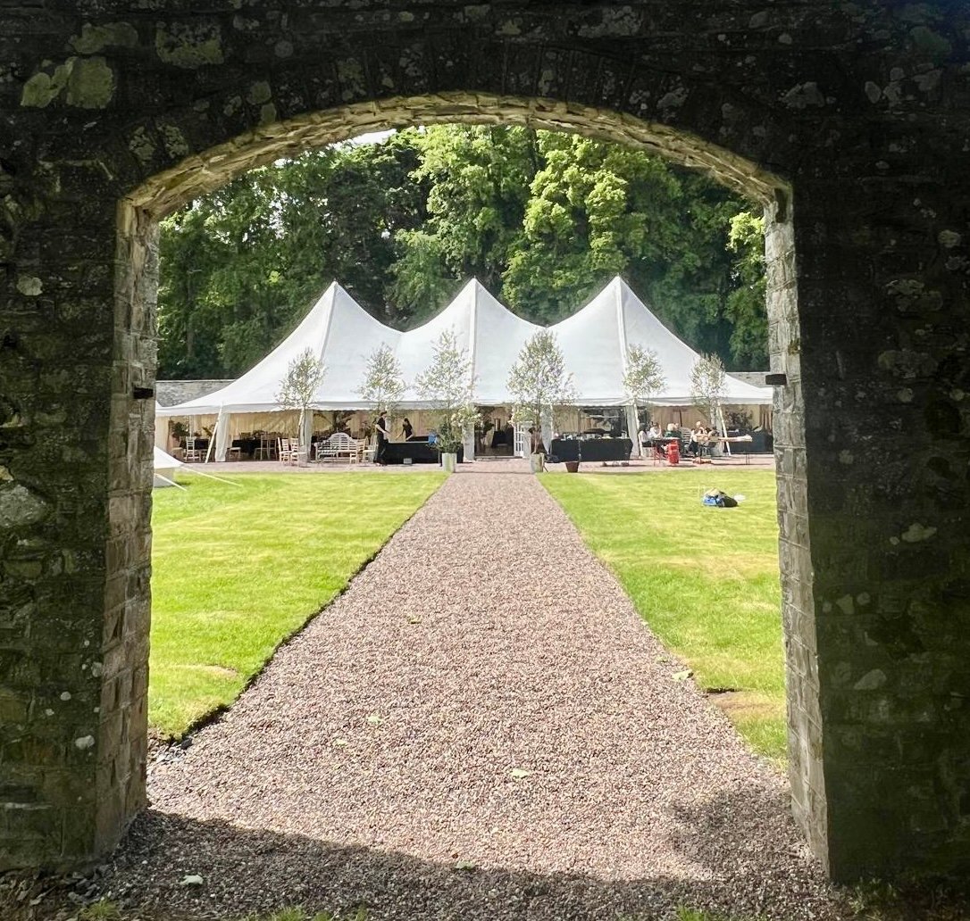 We got married at Branxholm Park in September 2024. The venue is beautiful; a quirky, well-curated collection of indoor and outdoor spaces, ensuring nobody could ever get bored. The animals are a gorgeous inclusion - the goats and horses are so friendly, and there's a wonderfully affectionate 3-legged cat called Cookie who was the real star of our day!