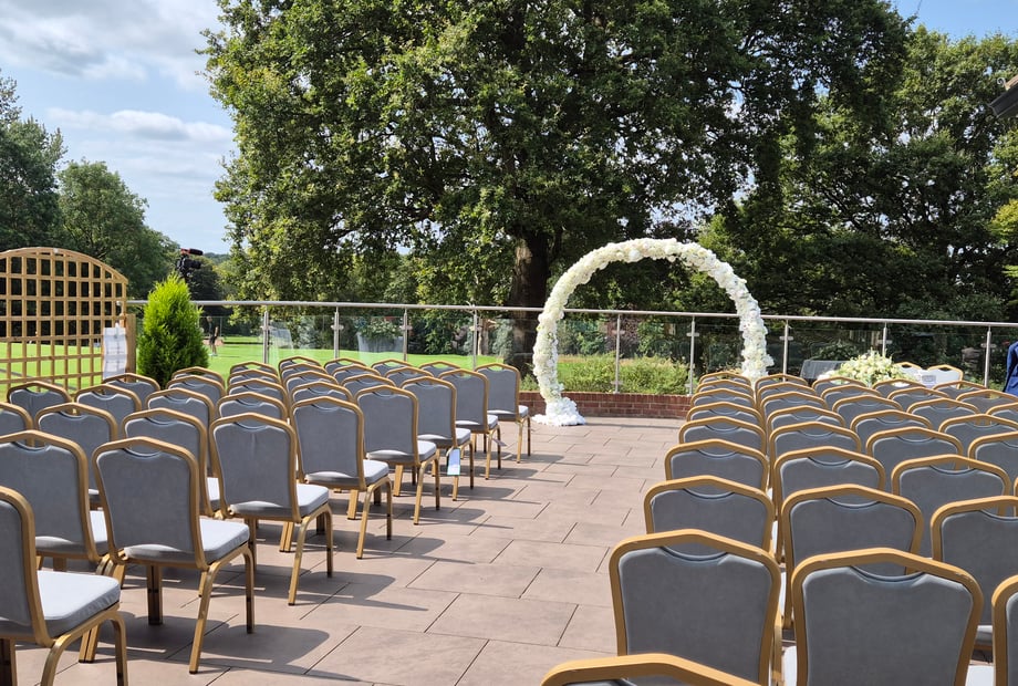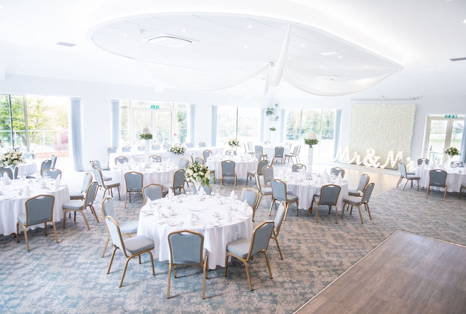 The Grange Suite is our new event space, part of our £1.3 million investment in accommodating up to 132 seated guests or 200 standing. It features its own private bar, bathroom facilities, a dance floor, and a terrace with stunning views of the landscape, providing the perfect backdrop for your important wedding photos.