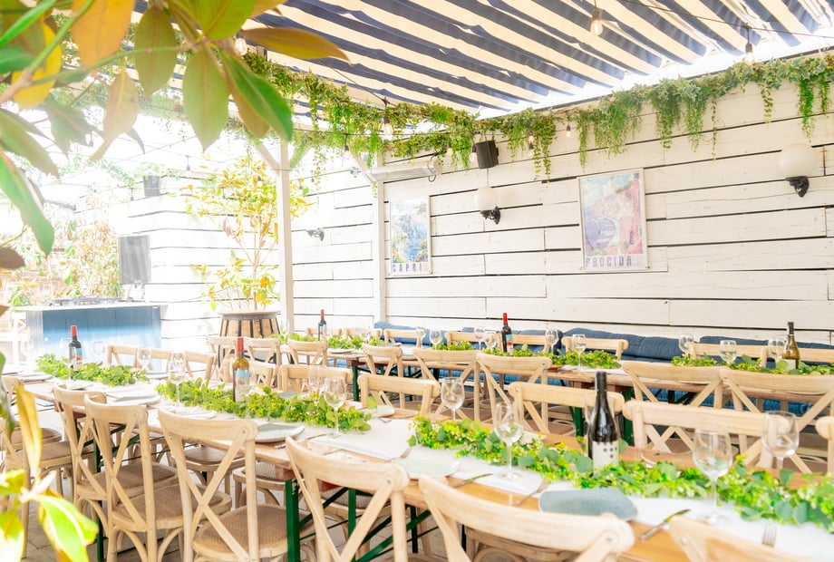 The venue provides a homely, intimate, and cosy atmosphere, especially on the rooftop terrace which transforms into a Mediterranean escape in summer and a winter wonderland in colder months, surrounded by lush plants and magical sunset views.