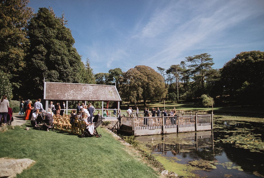 Absolutely. The estate features beautiful natural scenery including a tranquil lake, woodlands, a boathouse, and mountain views, serving as perfect backdrops for stunning wedding photos.