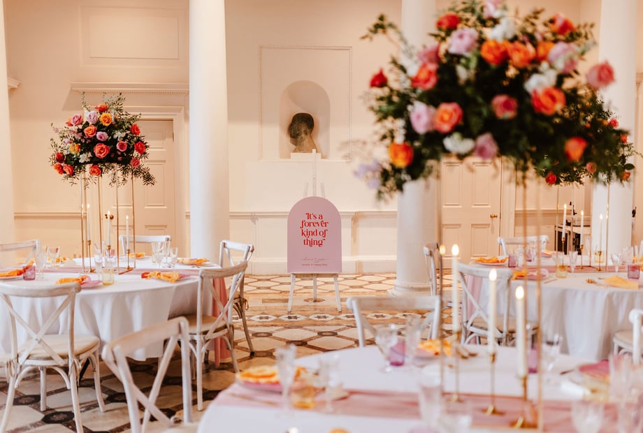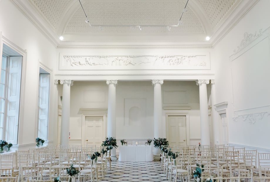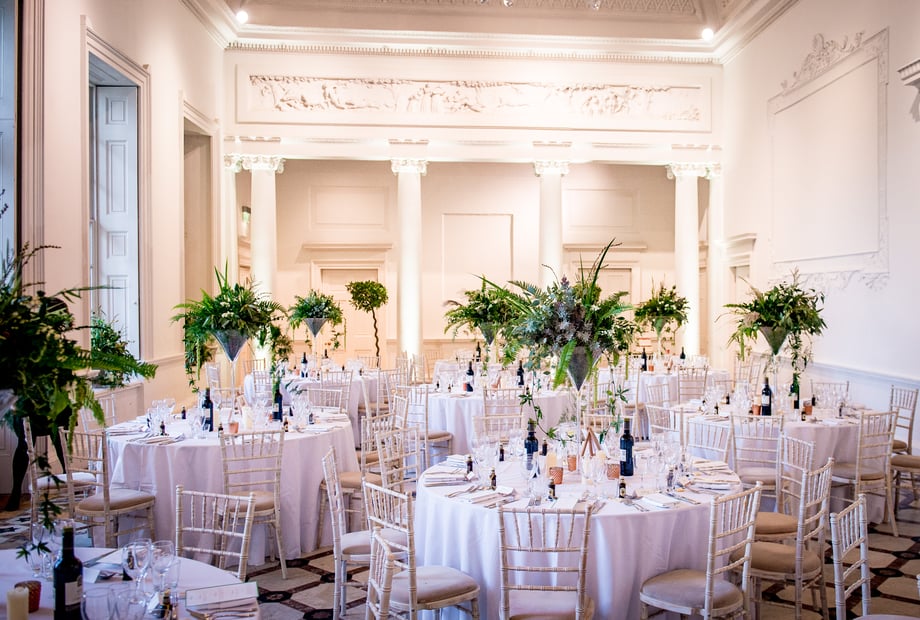 The stunning Adam Hall features an ornate ceiling and original marble floor. It transforms from a beautiful setting for the wedding breakfast into a lively space for the evening celebrations.