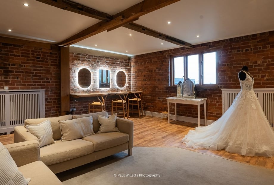 The Granary Barn, with its original oak beams and exposed red brick walls. It’s such a romantic space to say your vows!