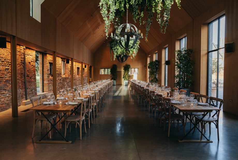 Transformed by Cripps & Co, a family-run business with 30 years' experience creating exceptional weddings, the venue offers the best of both worlds: modern design with timeless surroundings. The purpose-built barn sits just beside the grand Jacobean house and has been carefully designed to complement its historic setting while offering a light-filled, contemporary space for weddings.