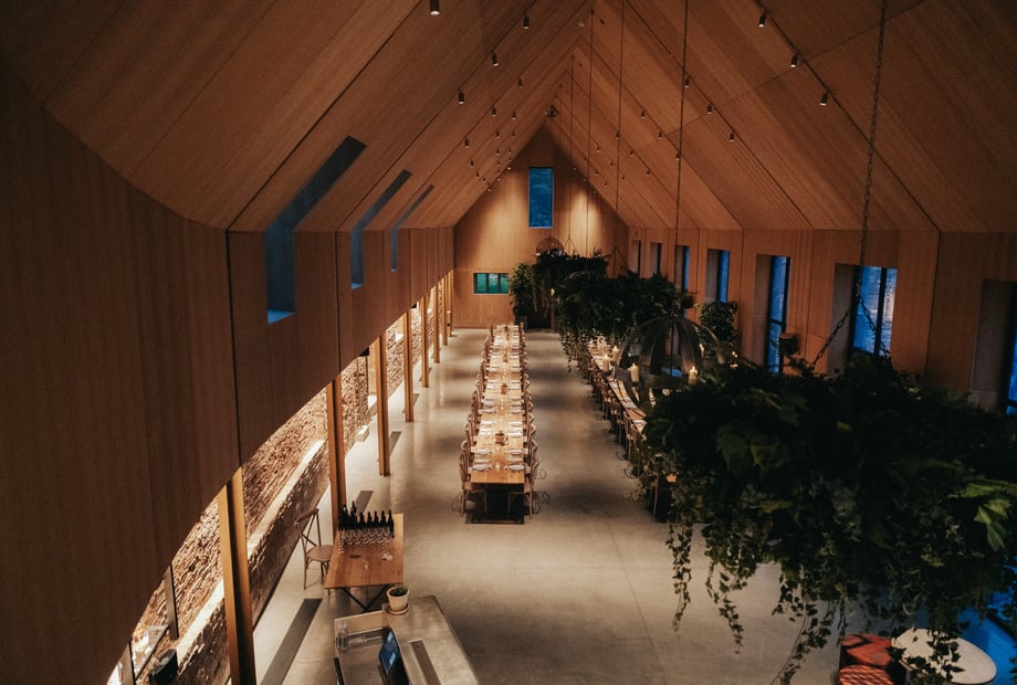 The barn holds up to 160 guests for ceremonies and dining. A clean, spacious interior with dramatic windows offers sweeping views of the gardens and estate grounds, while its style allows each couple to make the space their own. Couples can also have access to the Hall itself to get ready, as well as use of the gardens for drinks receptions or photos.