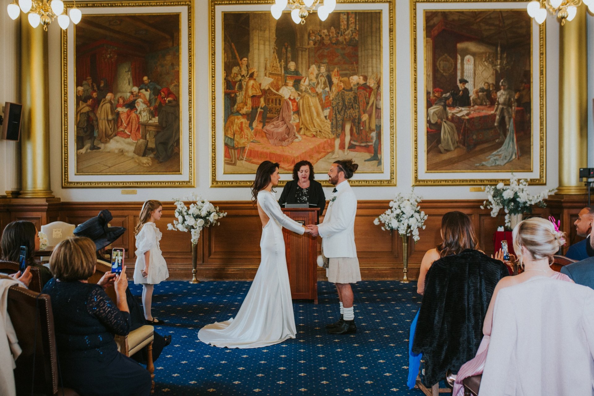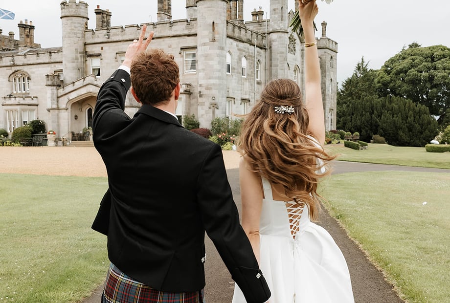 Whether you would like a religious, humanist or civil ceremony, there are a number of beautifully romantic locations at Dundas Castle where you can exchange your vows. The Great Hall within the medieval Auld Keep is the most popular location for ceremonies; the Hall with its vaulted ceiling and ancient stonework add to the atmosphere of romance. The elegant Croquet Room provides an altogether different ambience for a wedding ceremony; the impressive open fire, crystal chandelier and outlook across the sweeping lawns of the Estate make this room popular for a more intimate wedding. Outdoor wedding ceremonies are becoming increasingly popular, and with a choice of settings, there is no reason why you can’t say ‘I do’ in a beautifully serene garden location on the Dundas Estate, or in the charming Courtyard. Once the formality of the ceremony is over and the celebrations commence, whether you want an intimate candlelit feast for close family and friends in Stag Chamber, a more formal wedding breakfast in the elegant Croquet Room or a larger dining celebration with dancing into the night for up to 200 people in the Pavilion, Dundas provides options to suit all. The front of the Castle is the perfect backdrop for a grand finale, with a marching Scottish pipe band and fireworks lighting up the night sky. Our expert team will guide you through the planning of your wedding, and make recommendations based on their experience, as to which suppliers would work best with you to make your dream wedding a reality. During your wedding, our skilled team will be discretely by your side throughout the day to ensure that each and every moment is enjoyable, seamless and to plan. Many couples take full advantage of Dundas Castle being a destination for their wedding; with 17 delightful bedrooms, a wedding is an ideal opportunity to extend the celebration for 2, 3 or more nights. However long you decide to celebrate with friends and family, your memories will be treasured always.