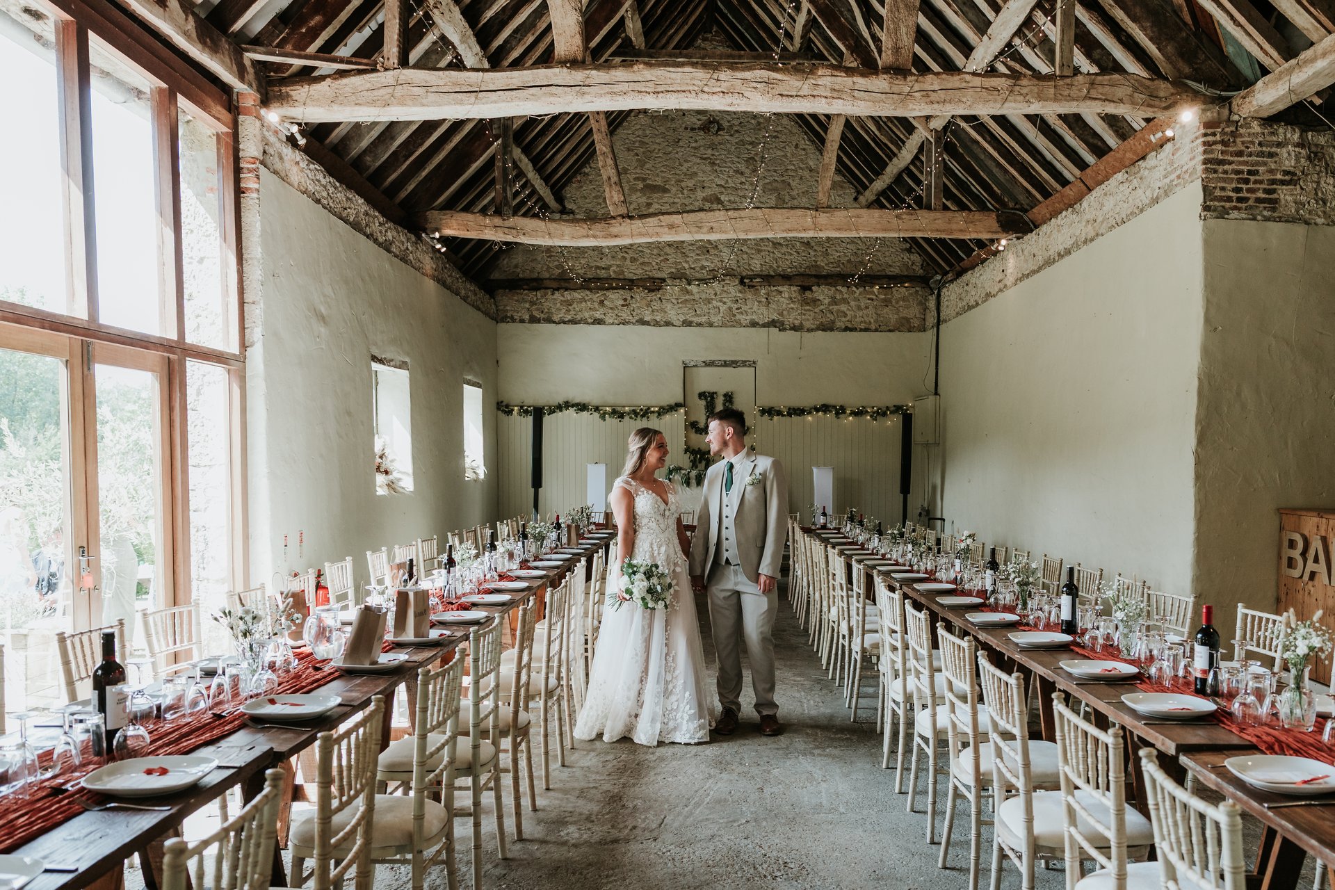 We are most proud of the newest wedding barn. Built in 2021, we started this from the ground up purpose-built for hosting the perfect wedding celebrations at East Afton. We put a lot of thought into the design process, layout, practicability and lots more. It borders our courtyard, which is the best spot for guests to mingle & have fun!