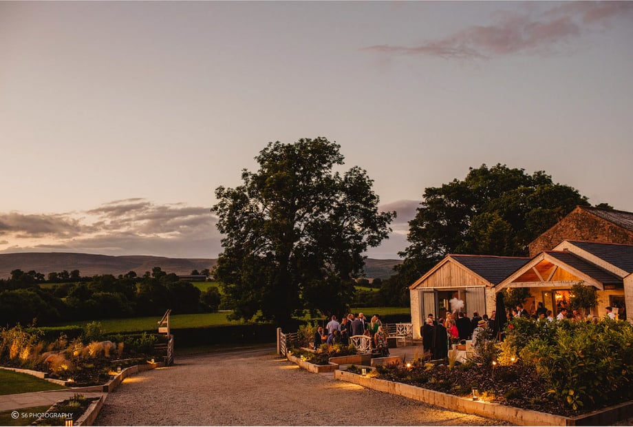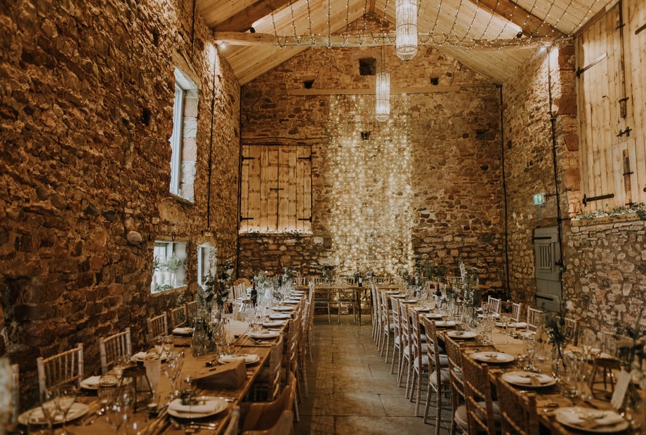 Our traditional 200 year old Westmorland stone barn, draped in twinkling fairy lights, is the most enchanting and unique place to be married. This beautiful building is packed with rustic charm from the giant chandeliers to the exposed stone walls, limestone flagged floor and vaulted ceiling. Outside there are expansive views of the Pennine hills, which you can enjoy from our landscaped outdoor areas, as well as the undercover terrace. Perfect for taking in golden hour, and watching the sun go down over the fields. In addition there are two licensed outdoor areas to be choose to be married; the outdoor handcrafted pavilion, or our meadow by the stream. We also have several beautiful country churches nearby.