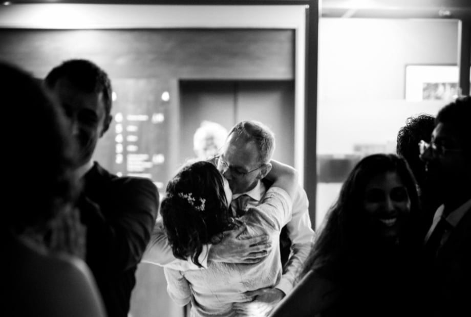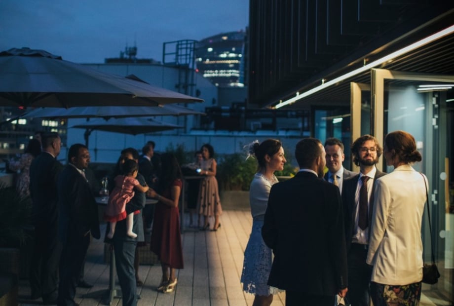 As the sun set, the couple and their loved ones took breathtaking photos on our terraces, with the city skyline providing a stunning backdrop. The festivities continued into the night with an open bar, where a DJ and saxophonist kept the energy high and the dance floor packed.
