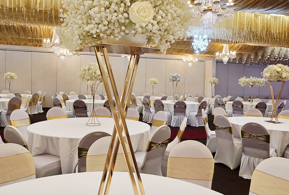 To make wedding planning as stress-free as possible, we offer a range of flexible hire options. Couples can choose from our fully inclusive wedding packages, which include a delicious 10-course meal, elegant stage décor, stylish centrepieces, and complete table and chair setups. Our experienced team works closely with you to ensure every detail is taken care of, allowing you to focus on enjoying your day.