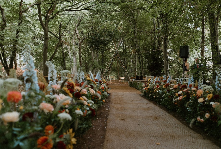 Set within the beautiful Welford Park estate, Forest Edge Tipis is available for exclusive hire—ensuring your celebration is shared only with those who matter most. Our exquisite, licensed ceremony area frames your vows amidst the peaceful woodland, creating a picture-perfect backdrop for your special moment. Every element of your day is thoughtfully tailored to reflect your personal style, ensuring a celebration that is uniquely yours.