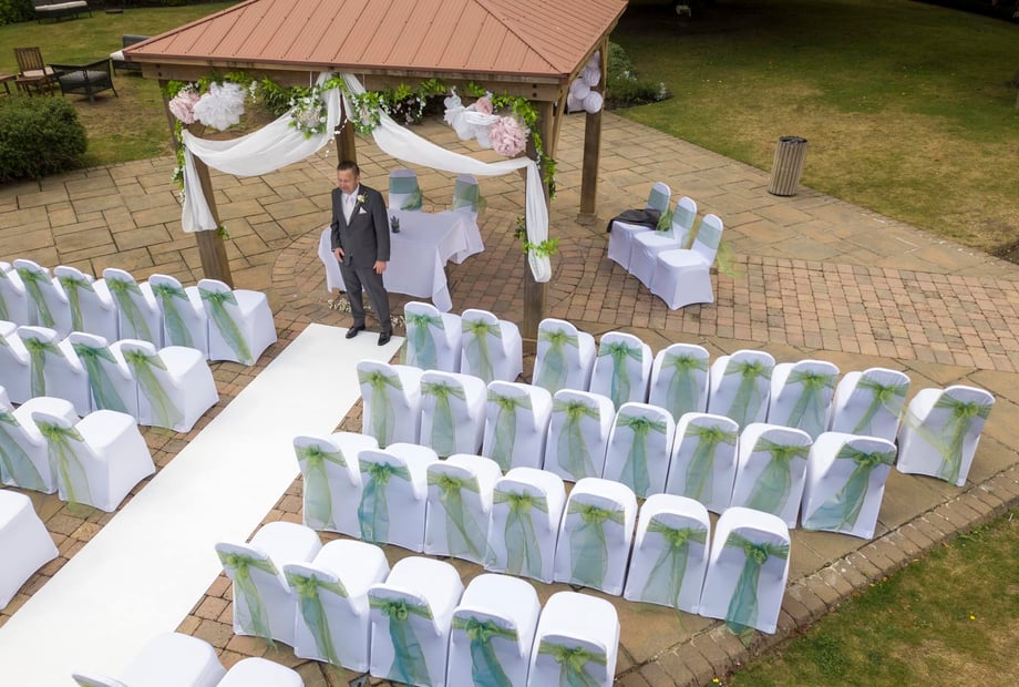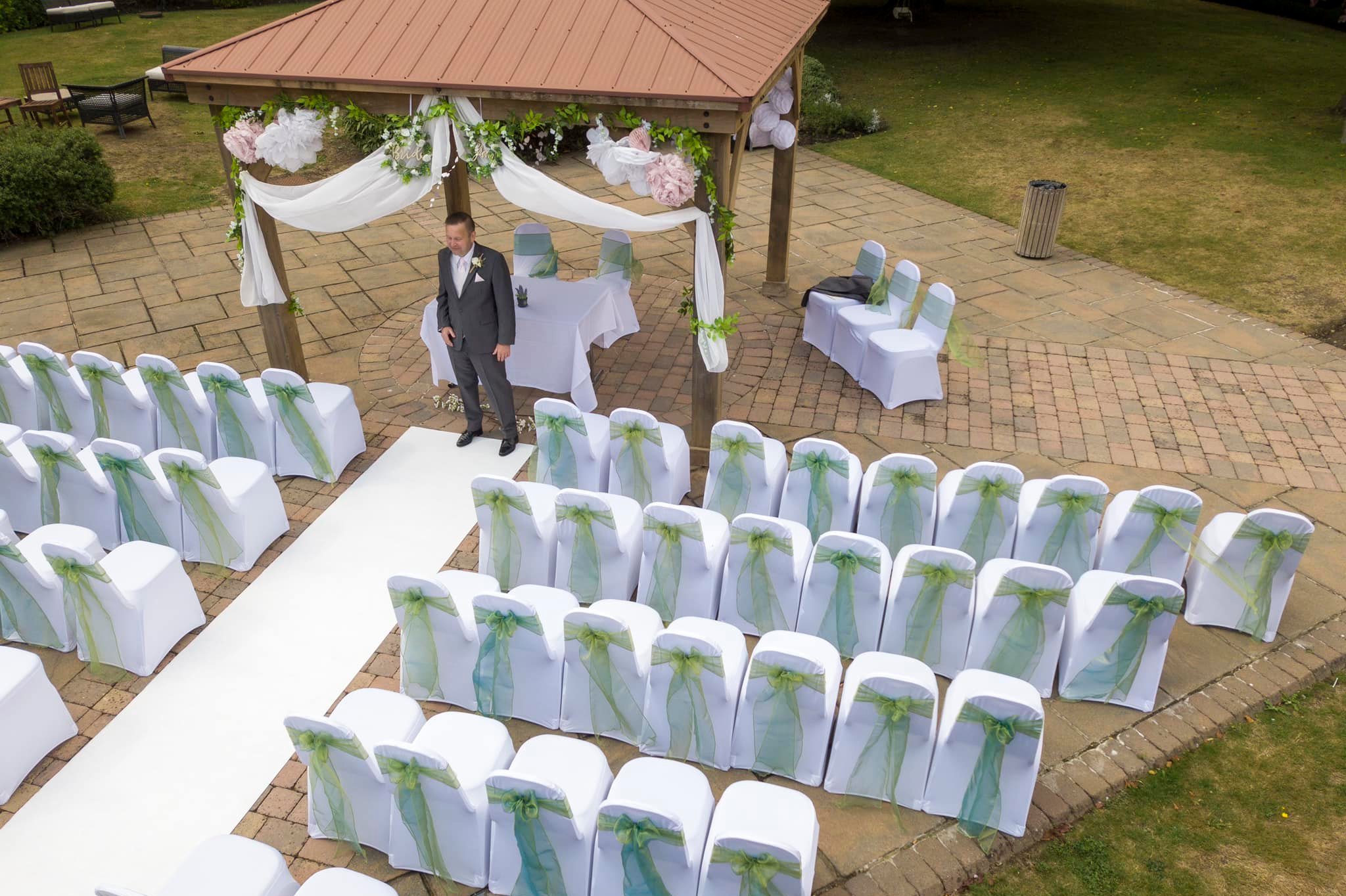 They catered for Coeliacs, and other dietary requirements - menus were identical whether or not it was gf. (As a Coeliac myself, this was a huge relief - the other coeliacs were blown away - it's not often that venues will cater for us in this way!)For us, this was the perfect venue. It could comfortably hold the 80-100 guests we were expecting and enough rooms for guests to stay the night, at a reasonable rate. There are 2 outdoor areas, one with outdoor tables and chairs, the other a pagoda, and a lawned area.