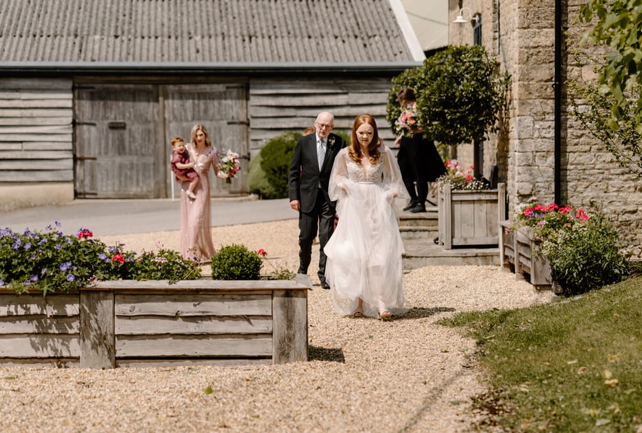 Merriscourt offers beautiful outdoor ceremony options on the wedding lawn with gorgeous views of the Cotswolds, or in the Courtyard, as well as indoor barn spaces, giving you flexibility whatever the weather.