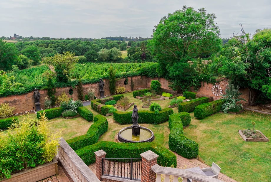 The walled Herb Garden and on our helicopter pad with rolling countryside.