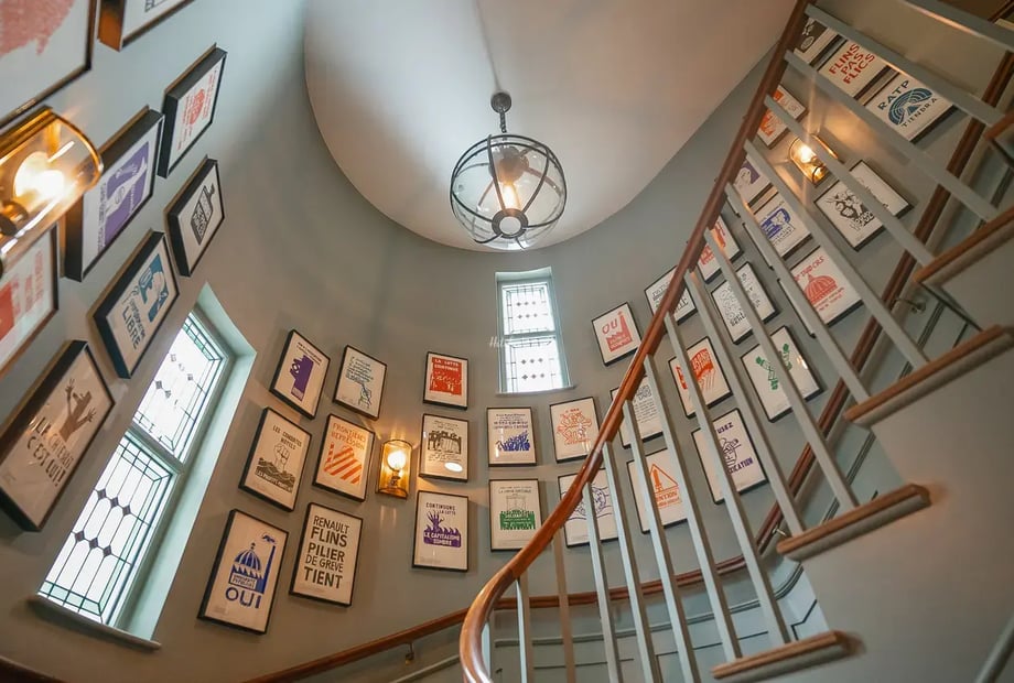 The building itself sets the tone. The walls are lined with photography by Martin Parr capturing moments of everyday English life, while the original floorboards underfoot were rehomed from Winston Churchill’s Old War Office.