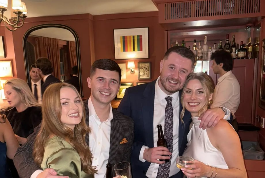 Guests arrive through streets shaped by centuries of London history before stepping into the warmth of the townhouse for drinks, dinner and celebration.