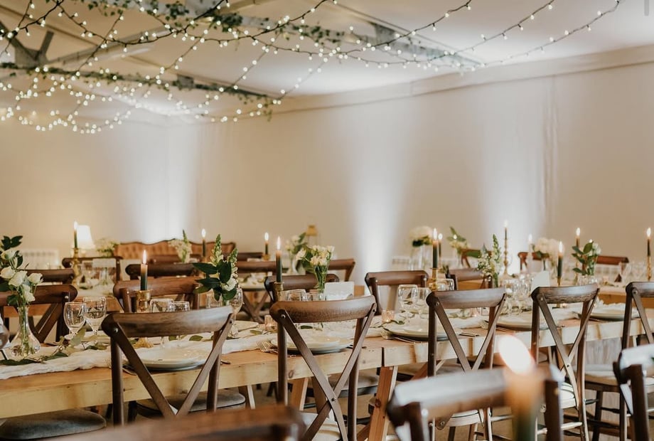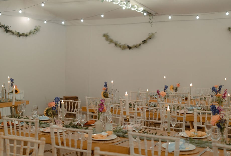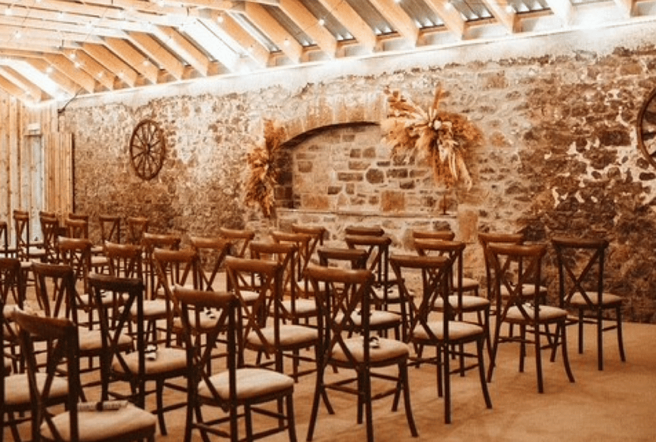 Tables and chairs are included, décor is something you organise together with us. We do have garden furniture, church pews, and barrels which you can hire for an additional fee.