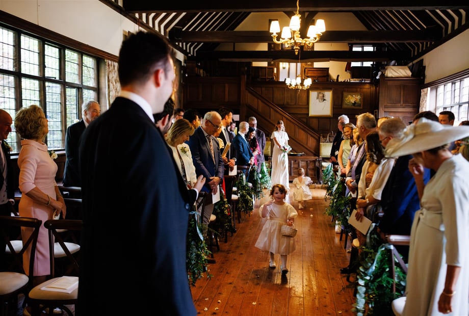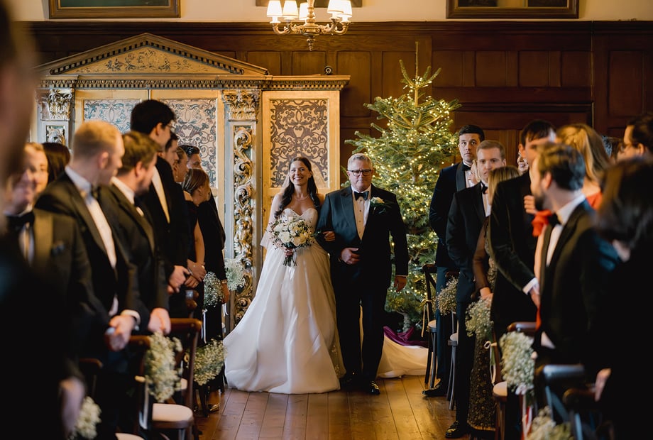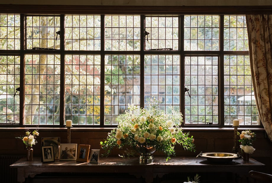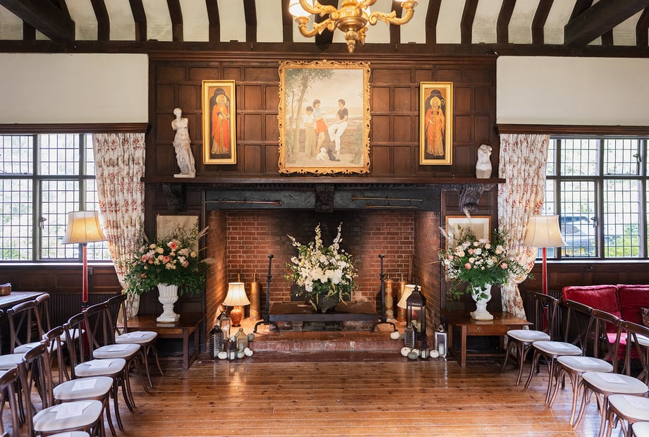 A vast inglenook fireplace looks wonderful decorated with seasonal flowers or during the colder months can be lit to create a roaring fire for a traditional winter wedding reception.