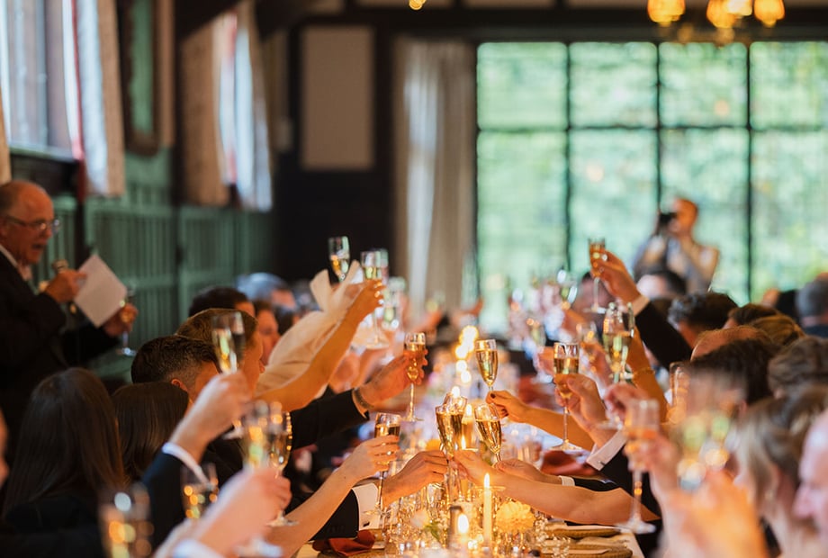 Tables and chairs are included in the price of the venue and there is enough room for them to stay where they are as festivities progress as guests take to the dance floor. Between the dance floor and the fireplace, your band or DJ can be set up and the all-important cash bar can be positioned at the other end of the hall.