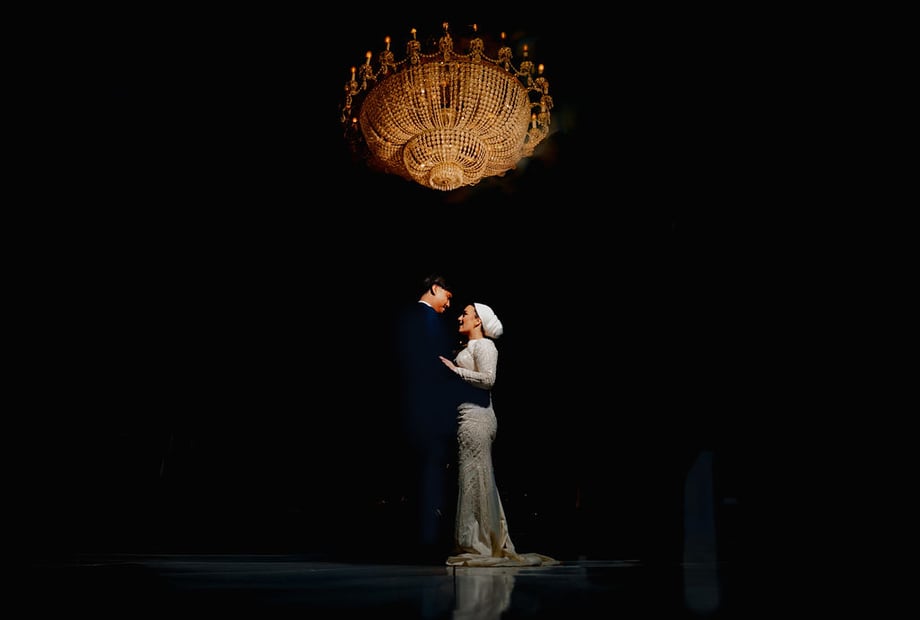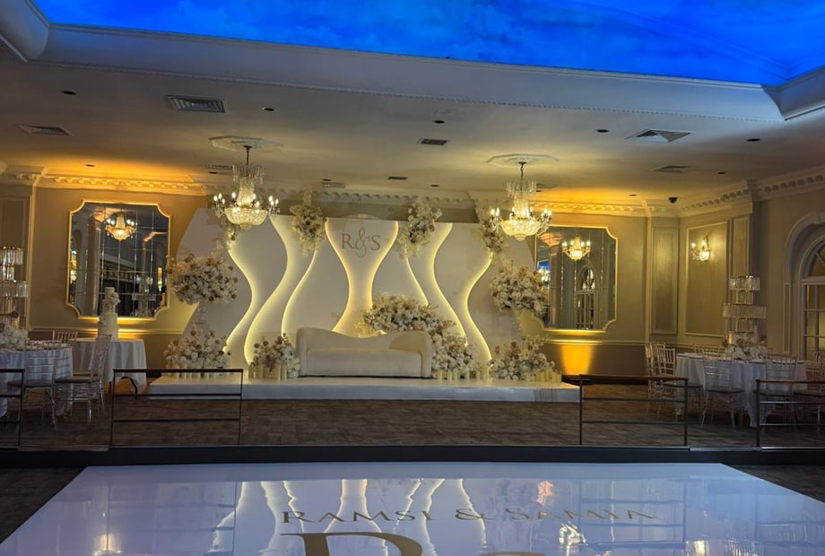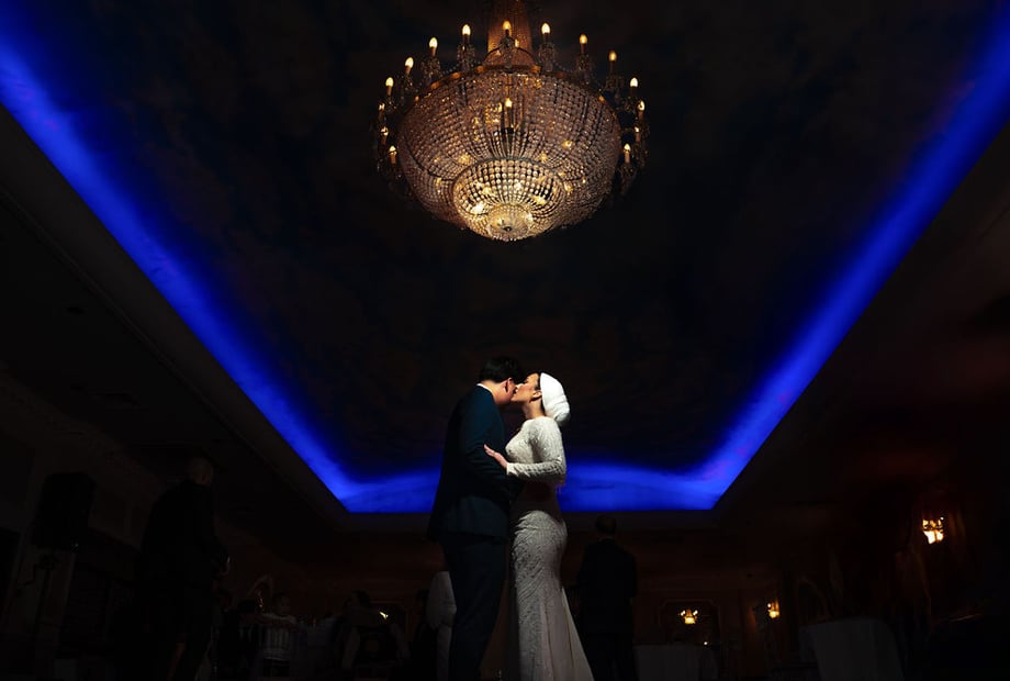 Our sky effect domed ceiling and crystal chandeliers.
