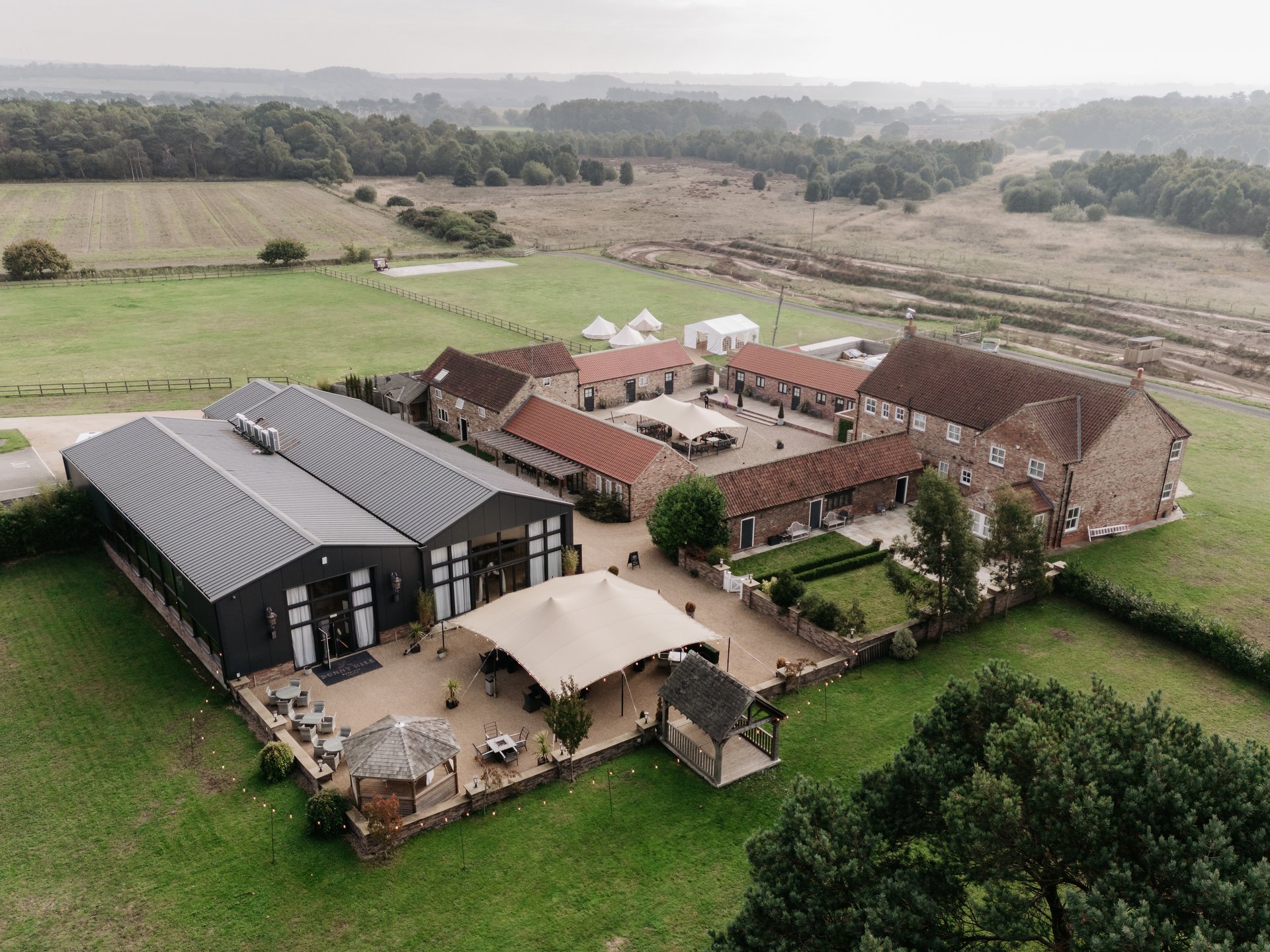 We reached out to Kate and Ed who immediately booked us a viewing. We called by a few days later and were blown away - the venue is incredible. It's so rustic but immaculately clean, with modern touches like the big black framed glass doors. It has such a romantic feel to it thanks to lovely little touches such as the fairy lights throughout (which looked amazing in the evening). There's so much space without it feeling too big, and everything is within arms reach including stunning accommodation.
