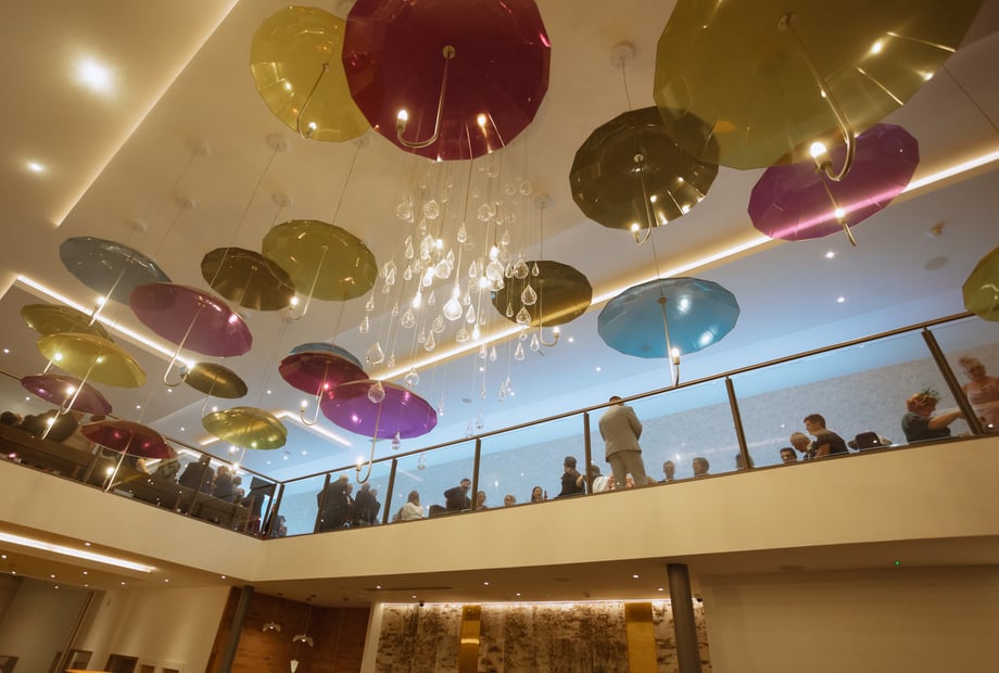 A historic yet modern hotel in the heart of Aberdeen! The hotel is made of granite, giving a sense of timelessness blended with it's contemporary vibe. A combination of something old and something new. The building itself, is unique and full of history, whilst incorporating modern touches throughout the hotel for example our unique coloured umbrellas in the lobby, next to exposed original granite wall