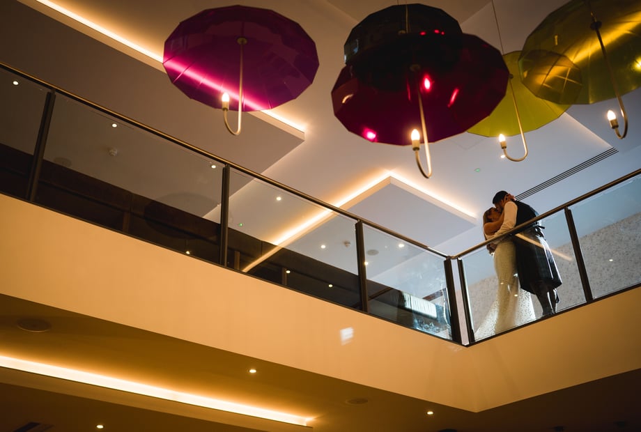 While we can’t offer an outdoor space for photography, the hotel provides a range of creative options for memorable moments. Explore the intimate Whisky Lounge for a cosy vibe, or involve your wedding guests in a unique photo opportunity by creating a bubble tunnel beneath the umbrellas in our lobby.