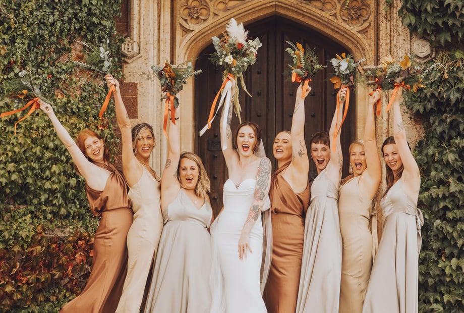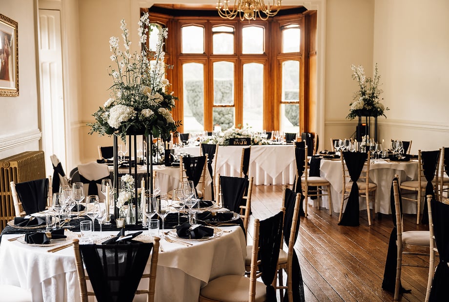 It has to be the Great Gatsby-themed wedding we held in Spring 2018 - it was such a great way to up the fun-factor. We absolutely loved this non-traditional and very romantic wedding theme. The wedding stationery such as place names, table plan and gift book were all 1920s-style and the centrepieces were vases filled with pearls, diamonds and white feathers. It looked really glam and fitted perfectly with our gold Banqueting Hall. The wedding cake was so extravagant with so many metallic shades, especially gold. The Bride was dressed head-to-toe in lace and lots of beading and bold red lipstick, the bridesmaids were perfectly matching. We also supplied our couple and their guests with glittery doughnuts for their sweet station to sit alongside their evening buffet along with an amazing champagne tower!