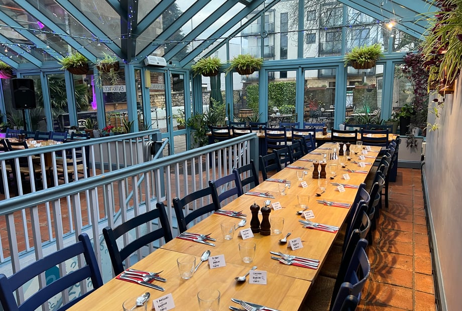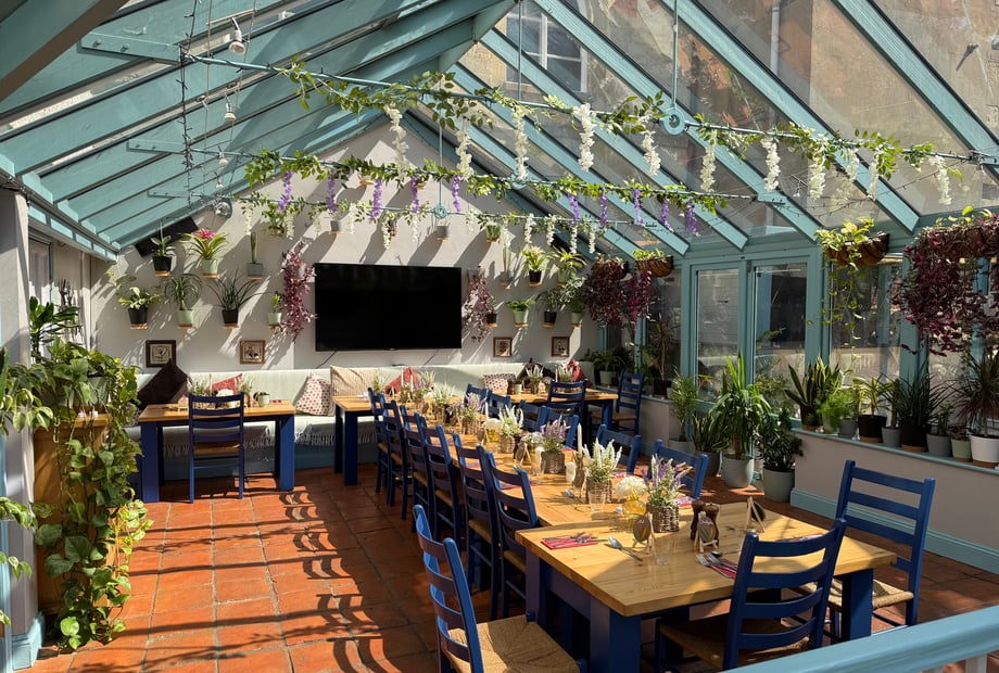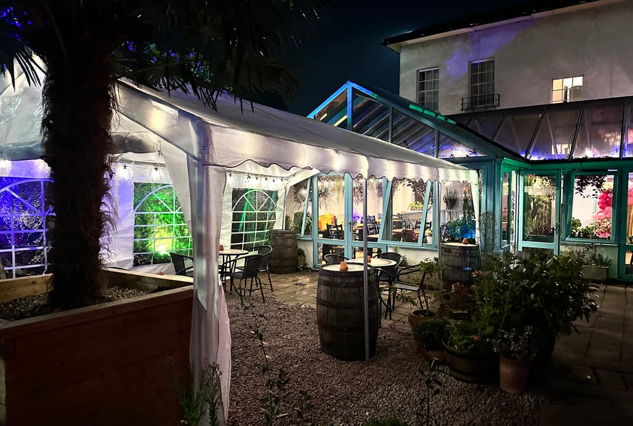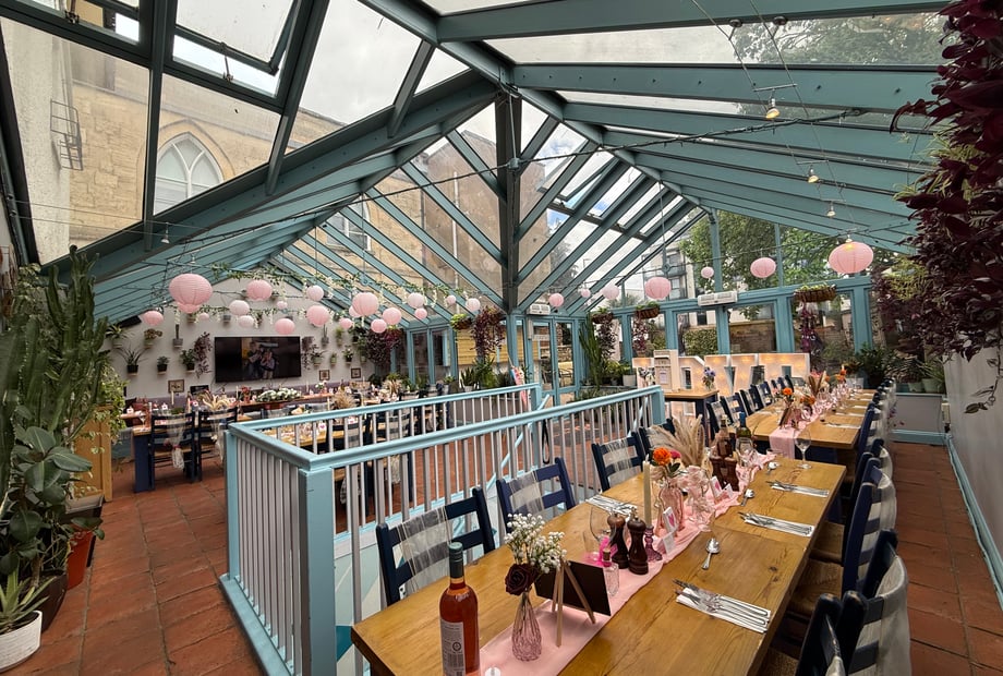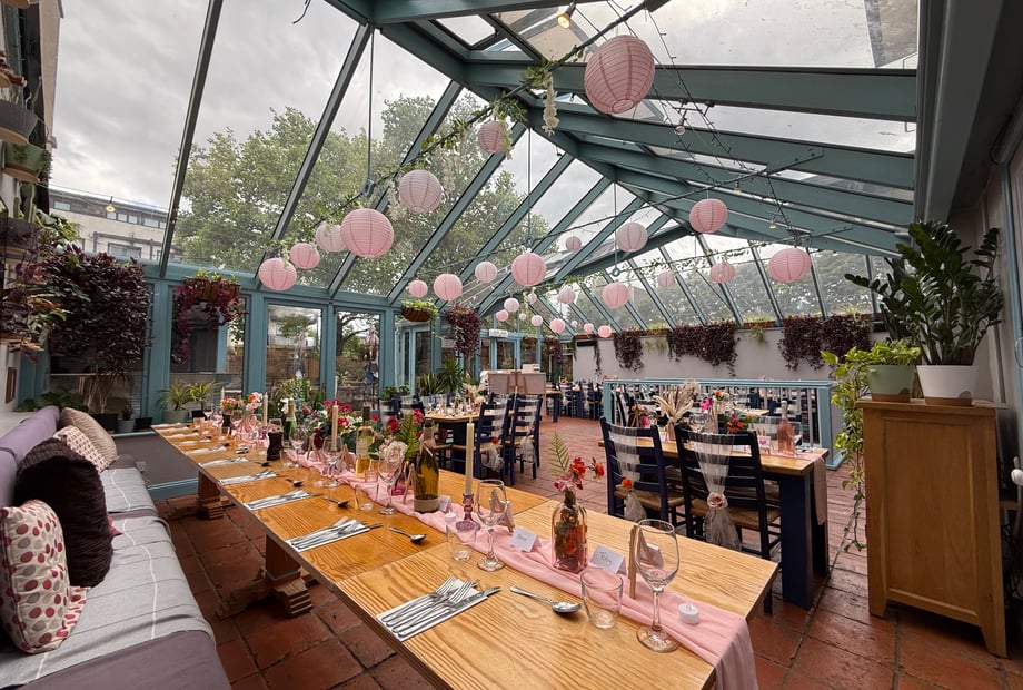 Our beautiful conservatory and garden space can host up to 120 guests, creating the perfect setting for dining, speeches and dancing. You also have the option to include our separate additional function room for up to 35 guests, featuring its own private bar and entrance—ideal for a photo booth, games, or simply offering guests a quieter space to relax.