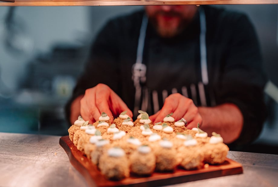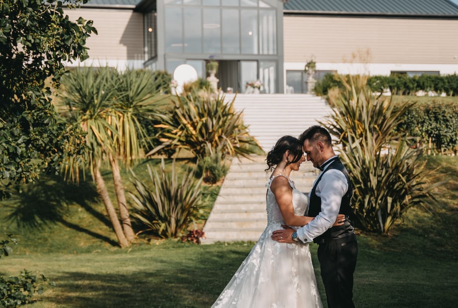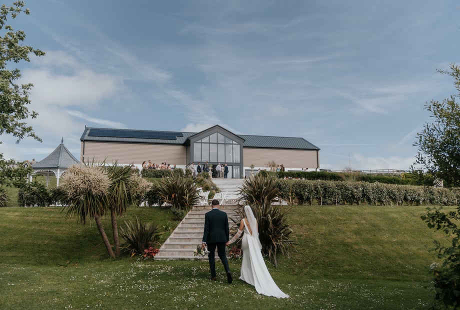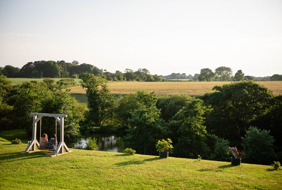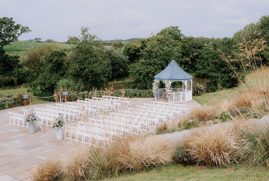 The bar will be open an hour before your ceremony allowing your guests to mingle in anticipation of your arrival. Your guests will be seated before you make your entrance into our glass fronted barn or outside on the lower terrace, with both options taking advantage of the stunning views. Once you've tied the knot, your guests can enjoy a glass of Pimms, beer or bubbly from our drinks packages, served by our team. Whilst you have your photos taken, in front of the lakes, palm trees, farm lanes, on the hammock, swing or sweeping terraces, guests can make the most of our lawn games, before you sit down to dine from our brand new in-house catering feast.