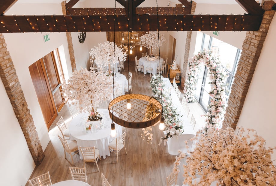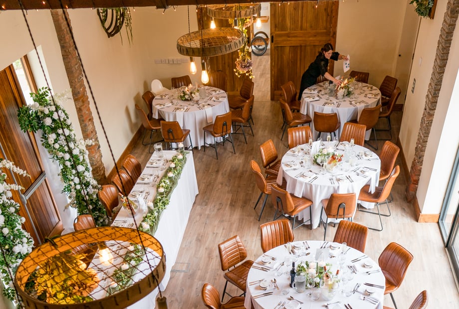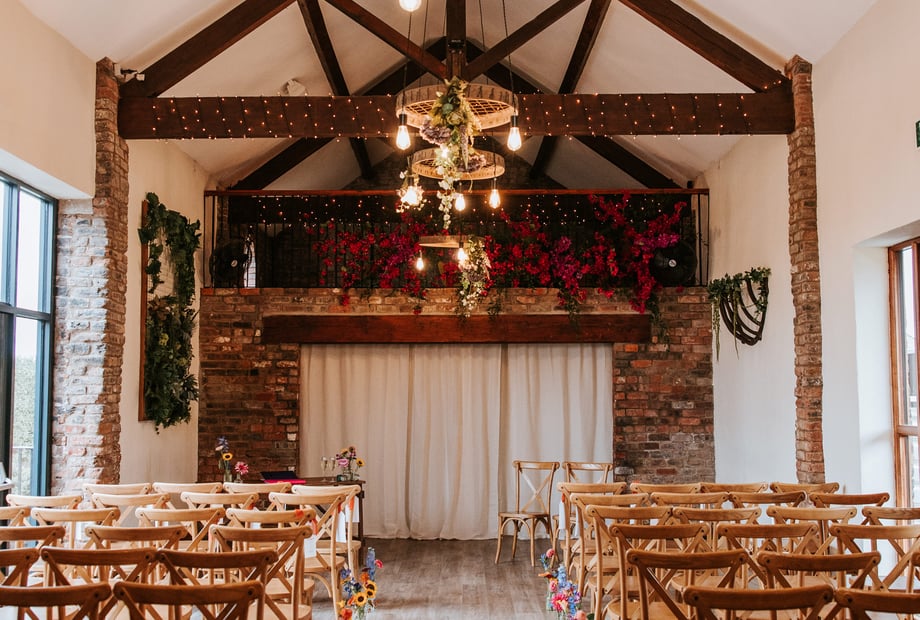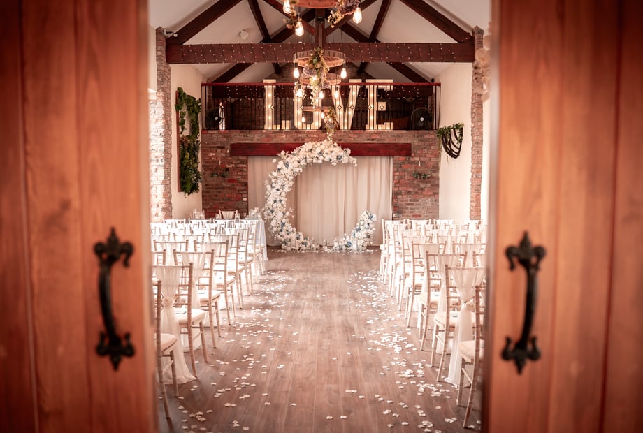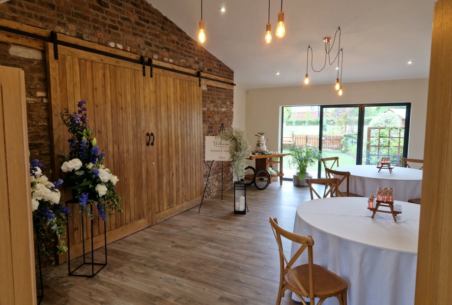 The Barn can accommodate up to 80 guests seated for a wedding breakfast and up to 140 guests for an evening reception, offering flexible space for your special day.